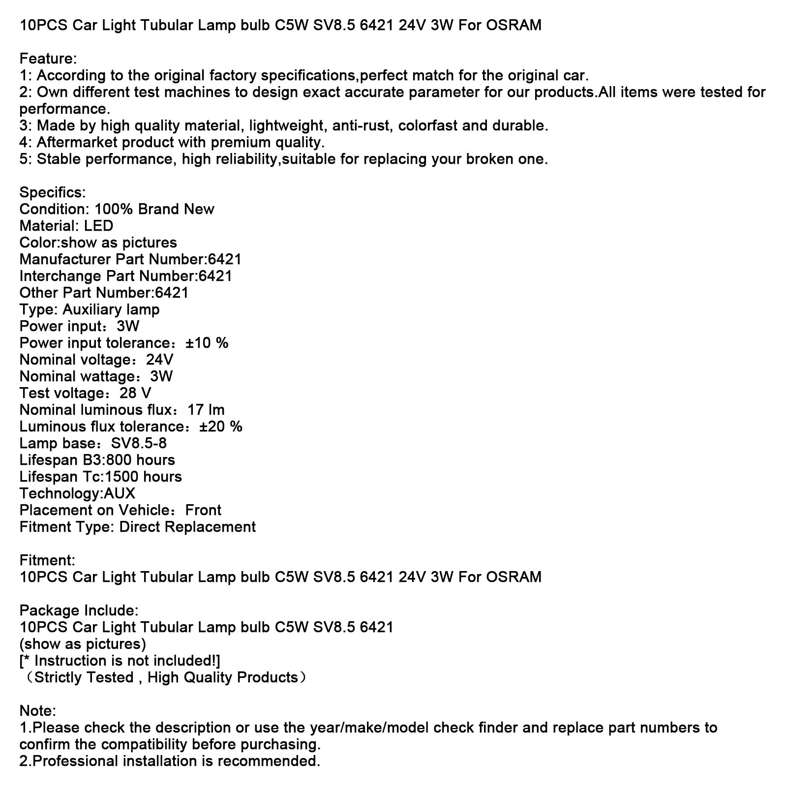 10 lampadine tubolari per auto C5W SV8.5 6421 24V 3W per OSRAM