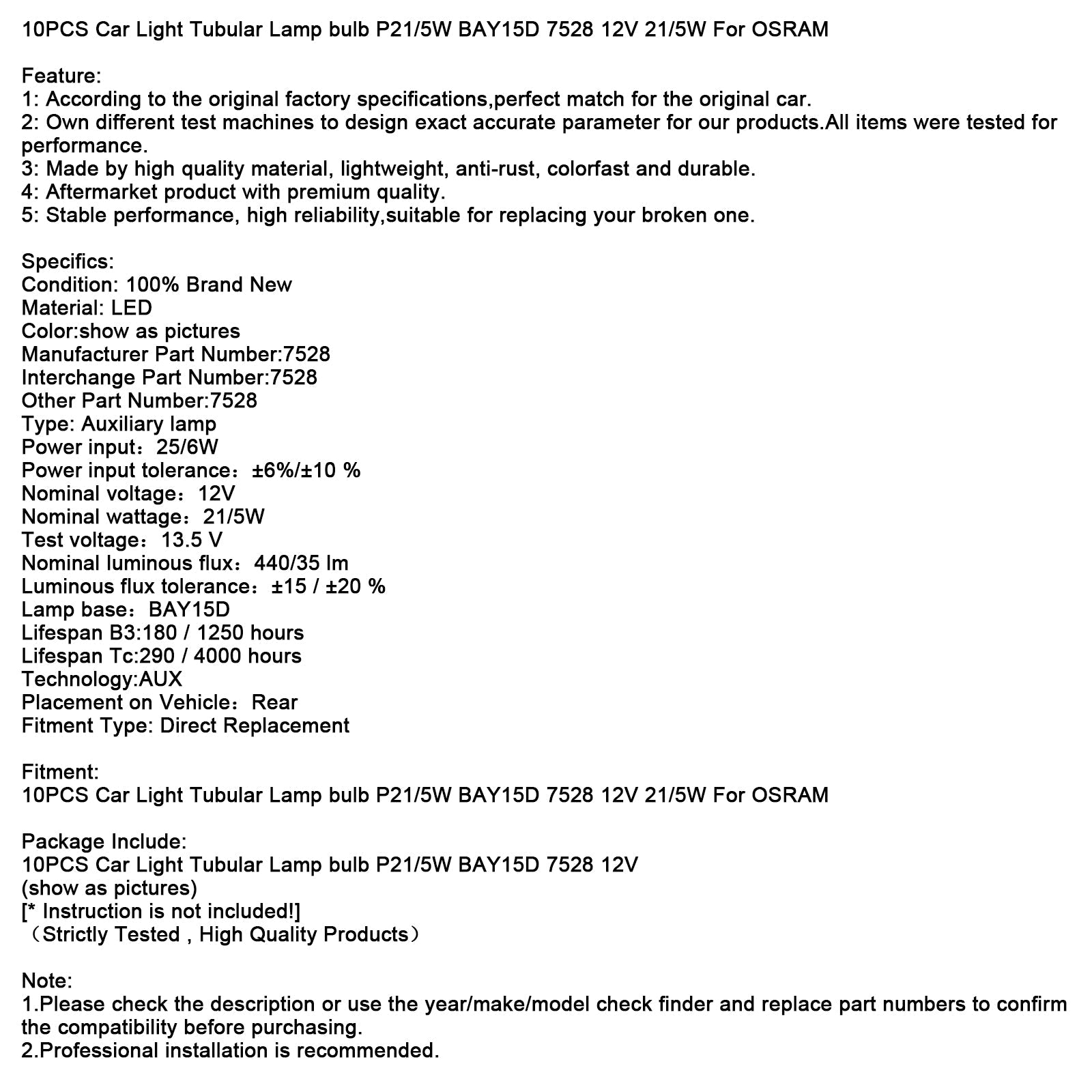 10 lampadine tubolari per auto P21/5W BAY15D 7528 12V 21/5W per OSRAM