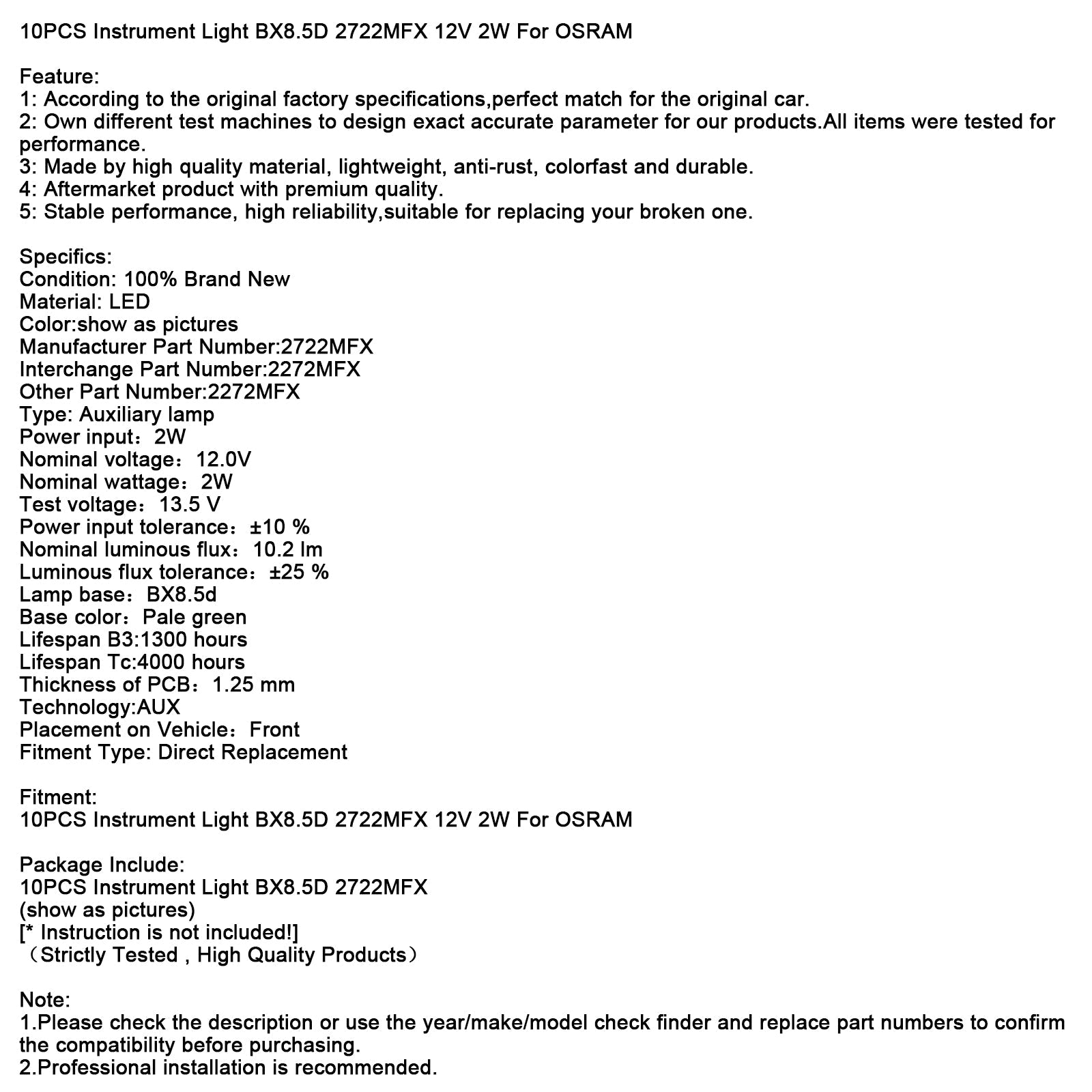10 pezzi Luce per strumenti BX8.5D 2722MFX 12V 2W per OSRAM