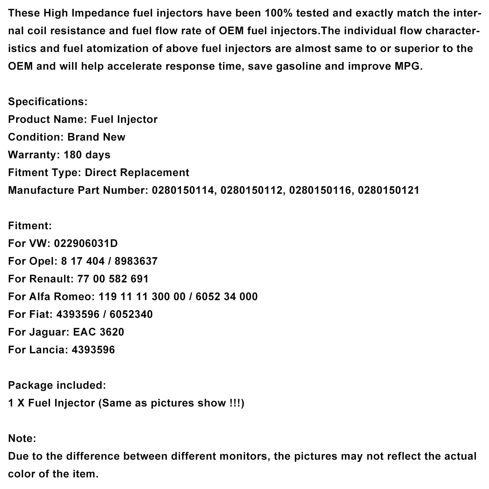 1 pz Iniettore carburante 0280150114 Adatto a VW Adatto a Opel Adatto a Renault Adatto a Alfa Romeo