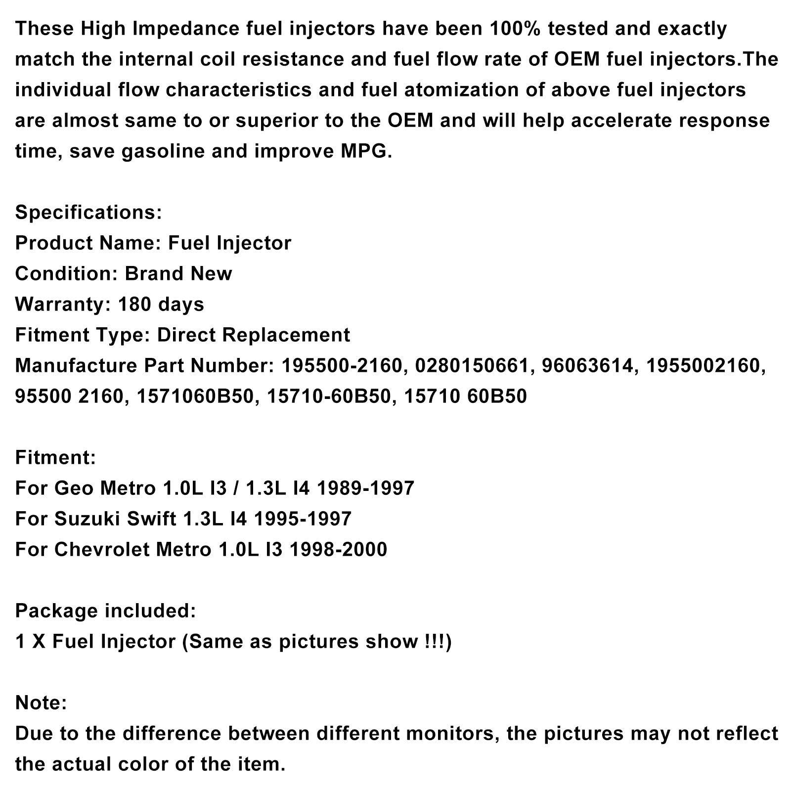 1 pz Iniettore carburante 0280150661 Adatto a Geo Metro Adatto a Suzuki Swift 1.0L 195500-2160