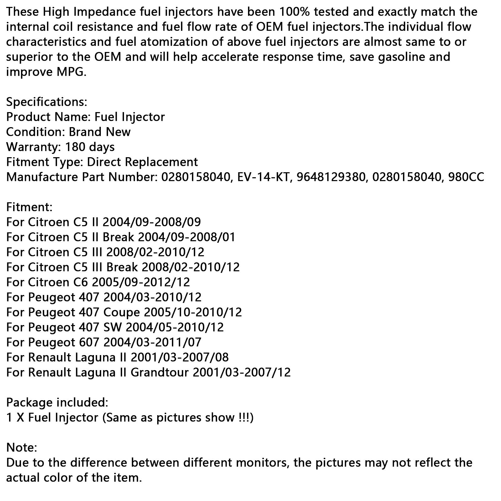 Numero di parte di fabbricazione: 0280158040, EV-14-KT, 9648129380, 0280158040, 980CC