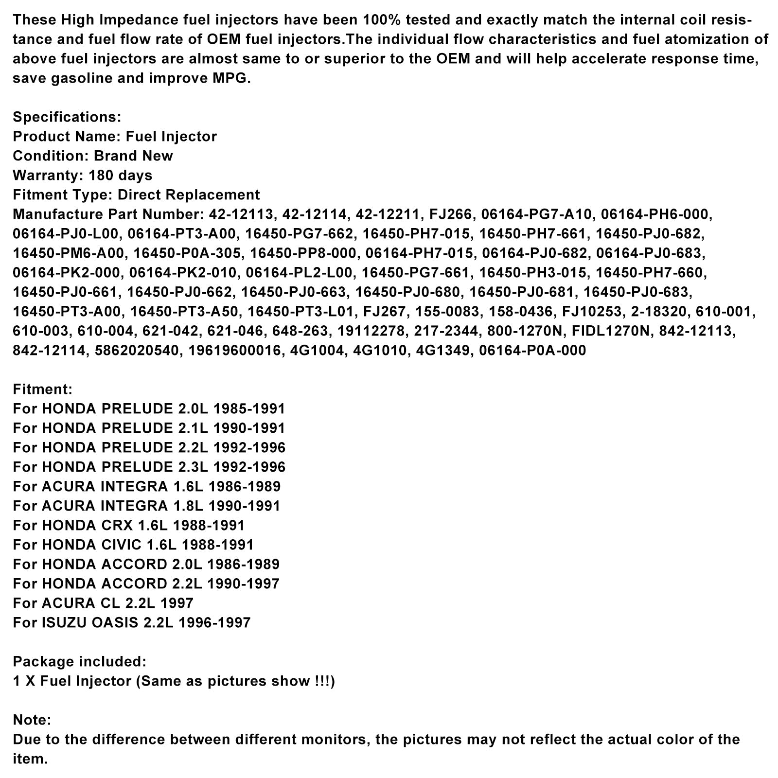 1 iniettore di carburante 06164-P0A-000 adatto per Honda Accord Prelude Civic 1990-1997