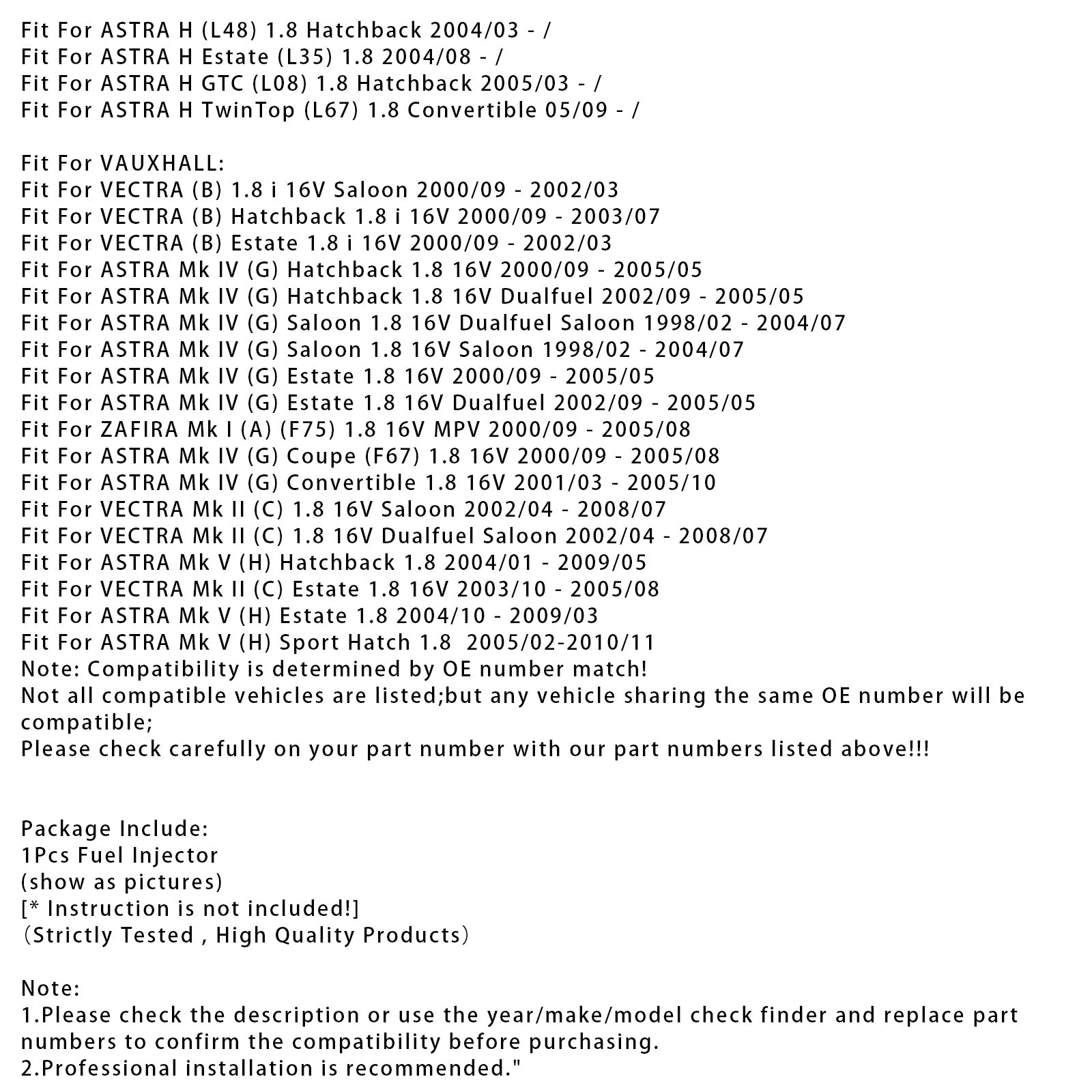 Adatto per ASTRA G Coupé (F07_) 1.8 16V 2000/09-2005/05