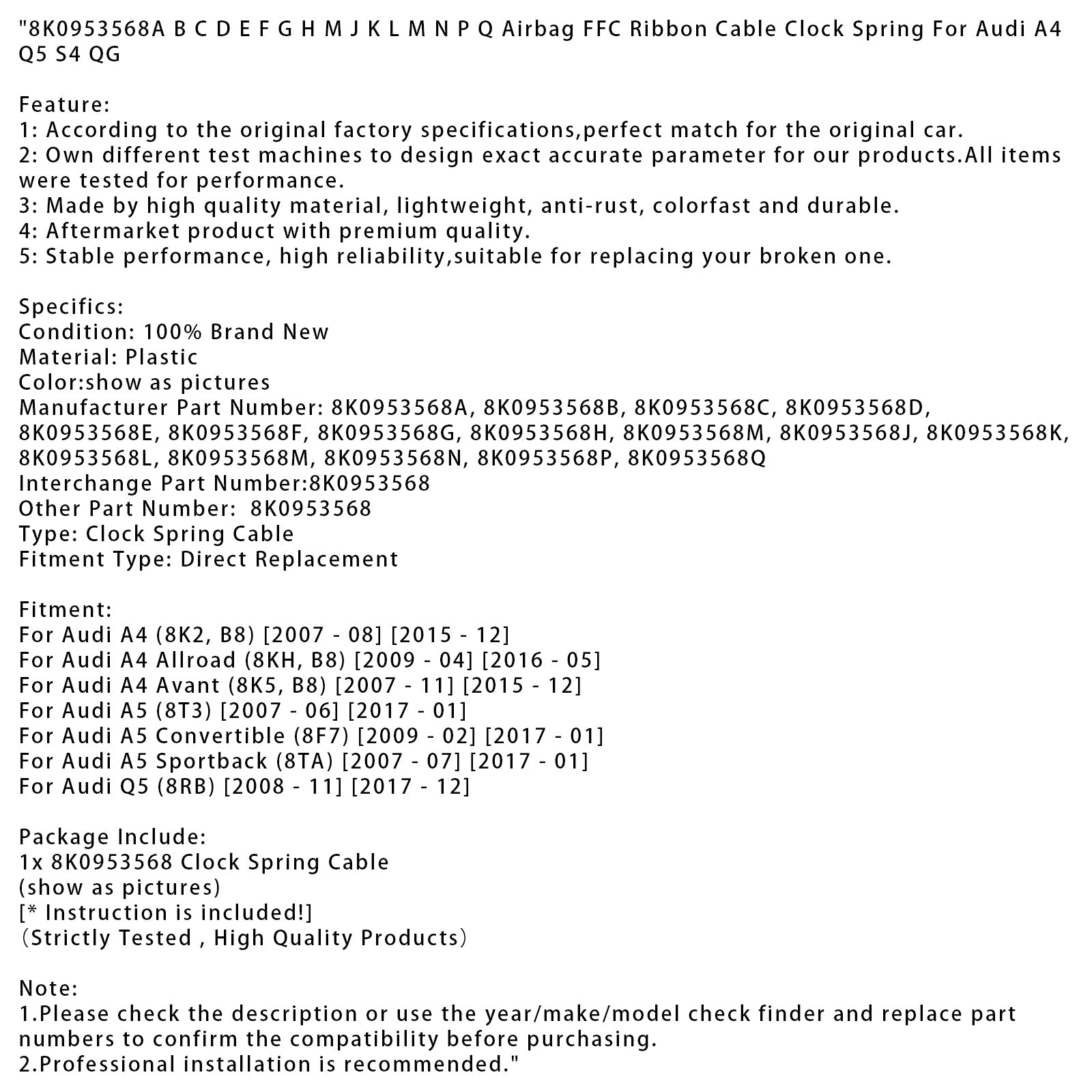 8K0953568A BCDEFGHMJKLMNPQ Cavo a nastro FFC per airbag, molla di trasmissione per Audi A4 Q5 S4 QG