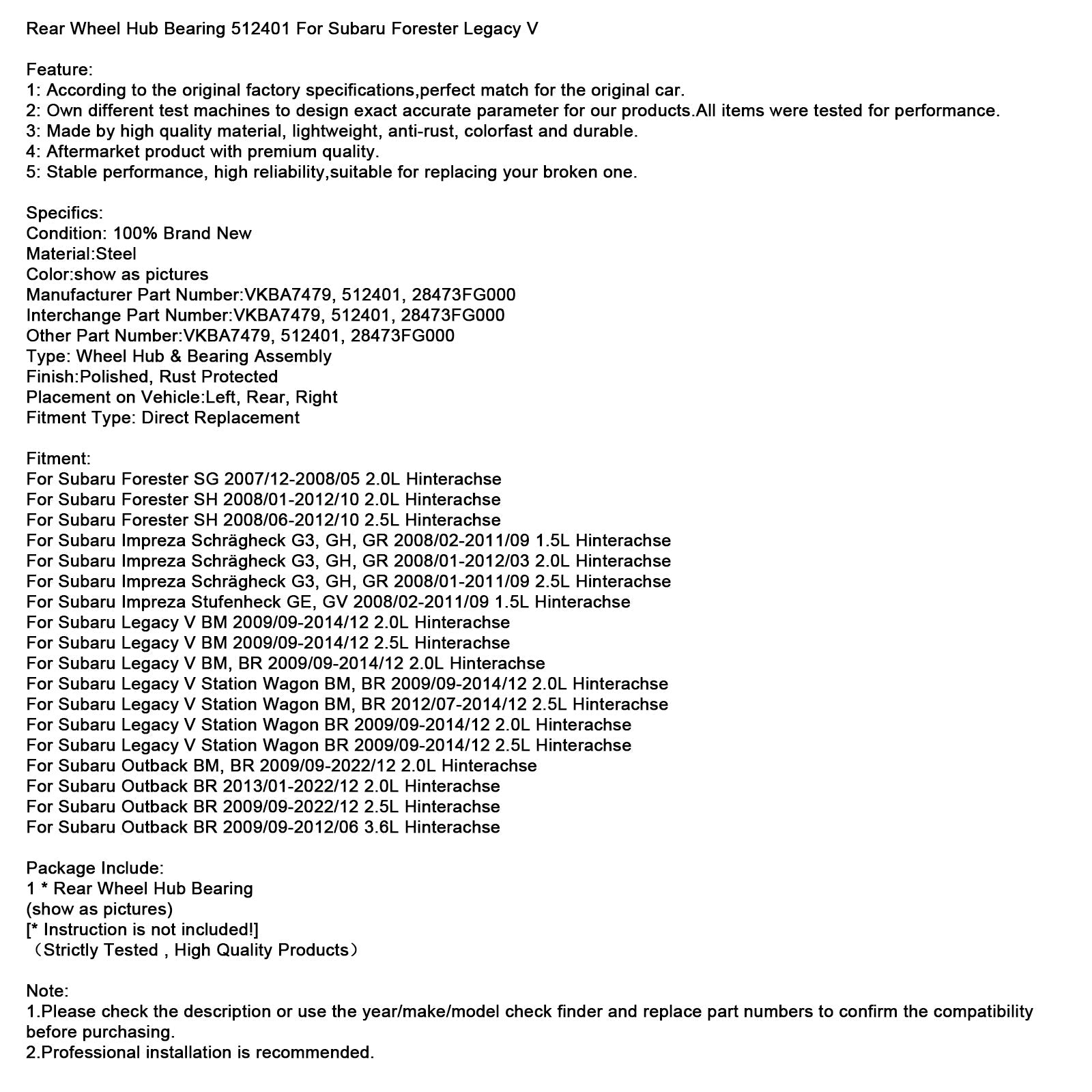 Cuscinetto mozzo ruota posteriore 512401 per Subaru Forester Legacy V