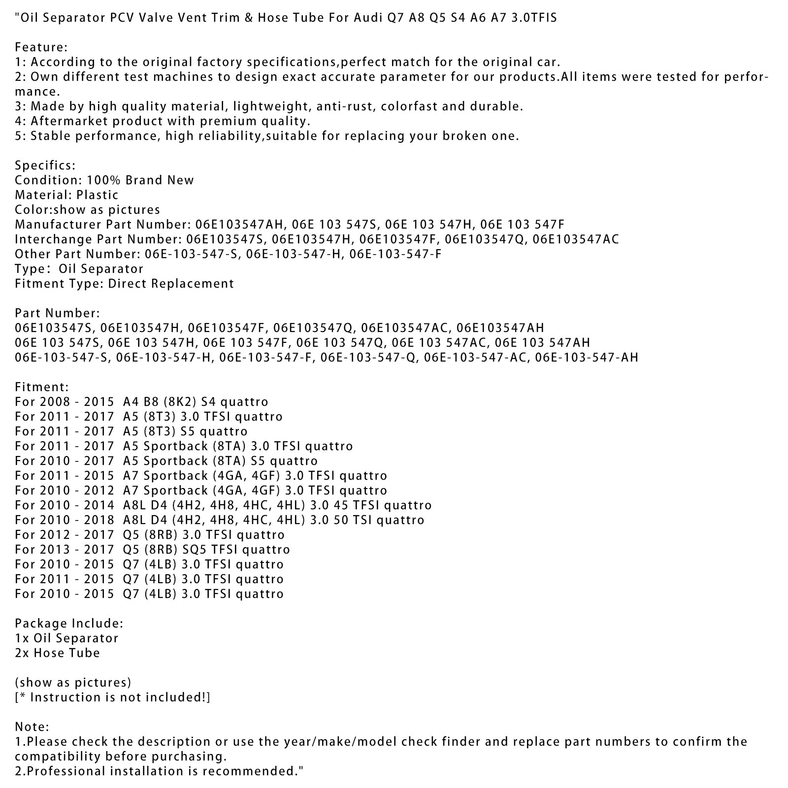 Separatore olio PCV valvola sfiato trim & tubo flessibile adatto per Audi Q7 A8 Q5 S4 A6 A7 3.0TFIS