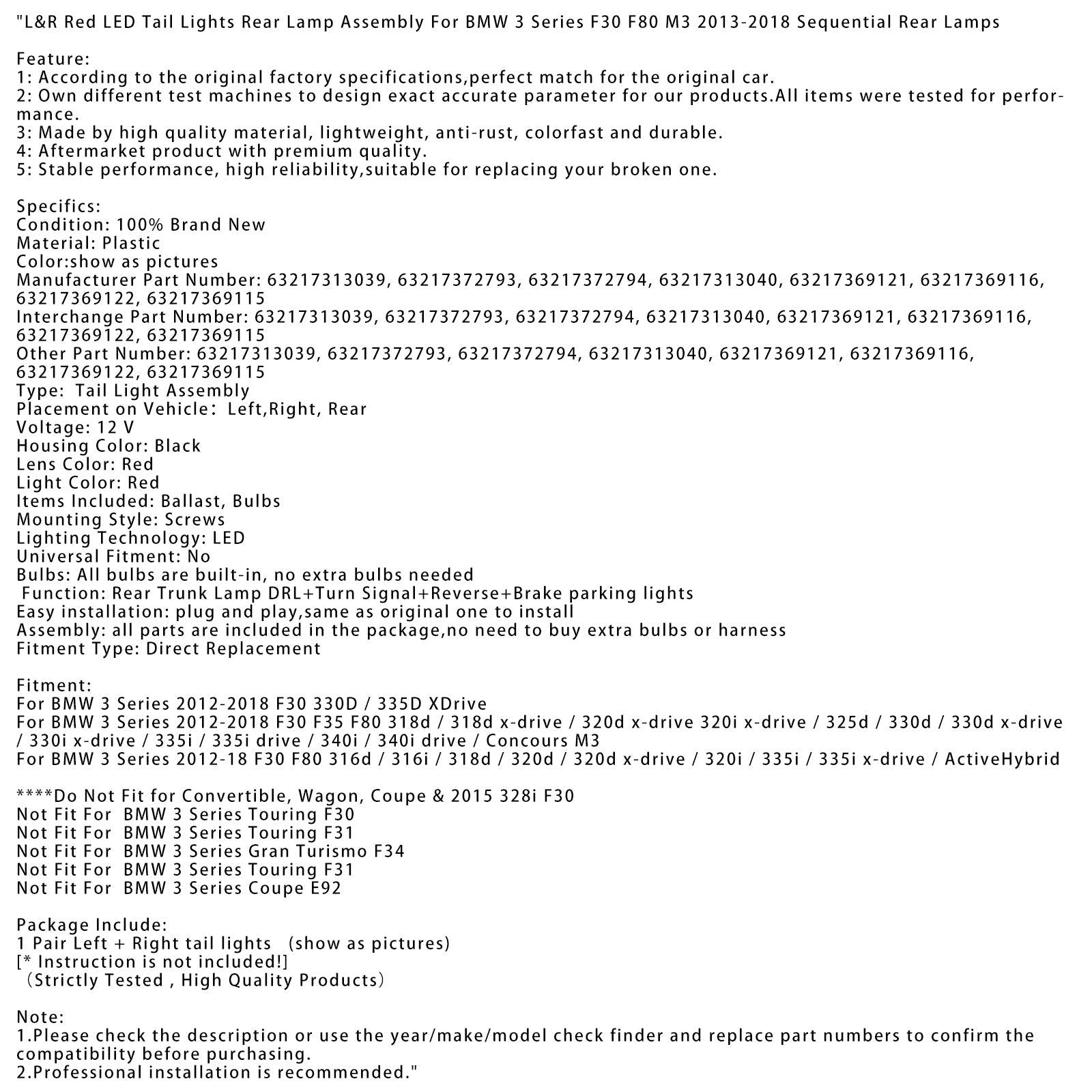 Gruppo ottico posteriore a LED rosso L&R per BMW Serie 3 F30 F80 M3 2013-2018, fanali posteriori sequenziali