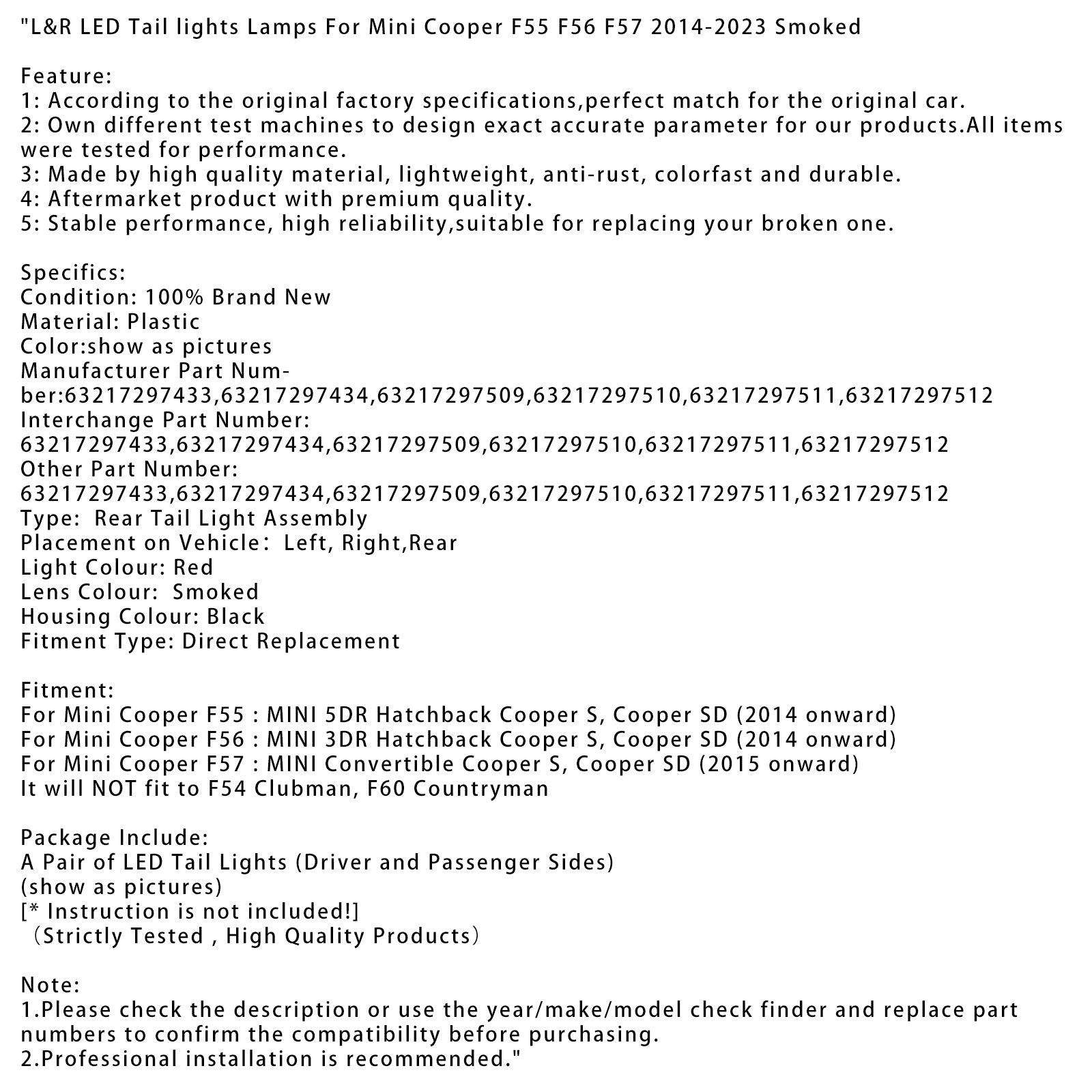 Fanali posteriori a LED L&R per Mini Cooper F55 F56 F57 2014-2023 fumé