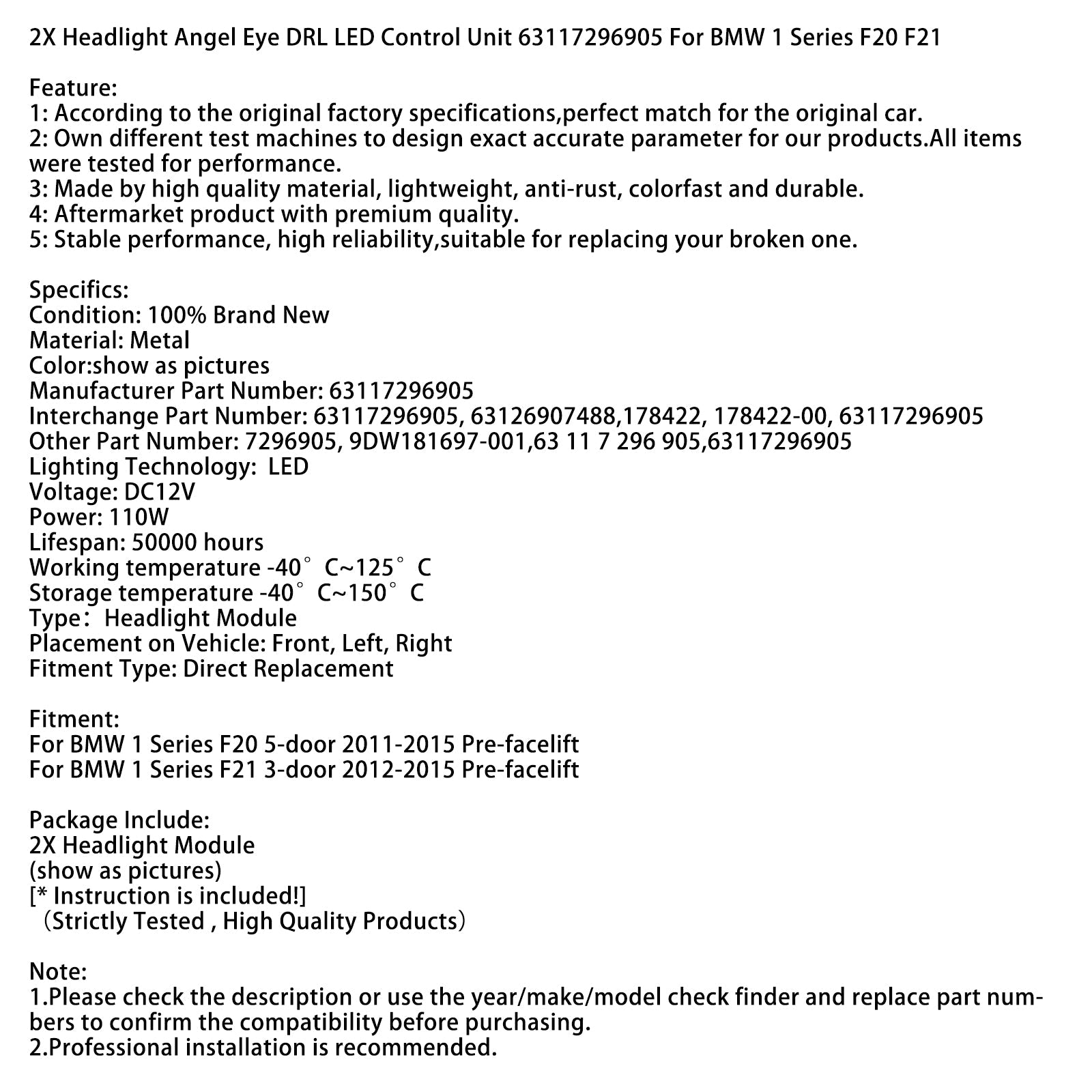 2X Unità di controllo LED DRL Angel Eye per fari 63117296905 per BMW Serie 1 F20 F21