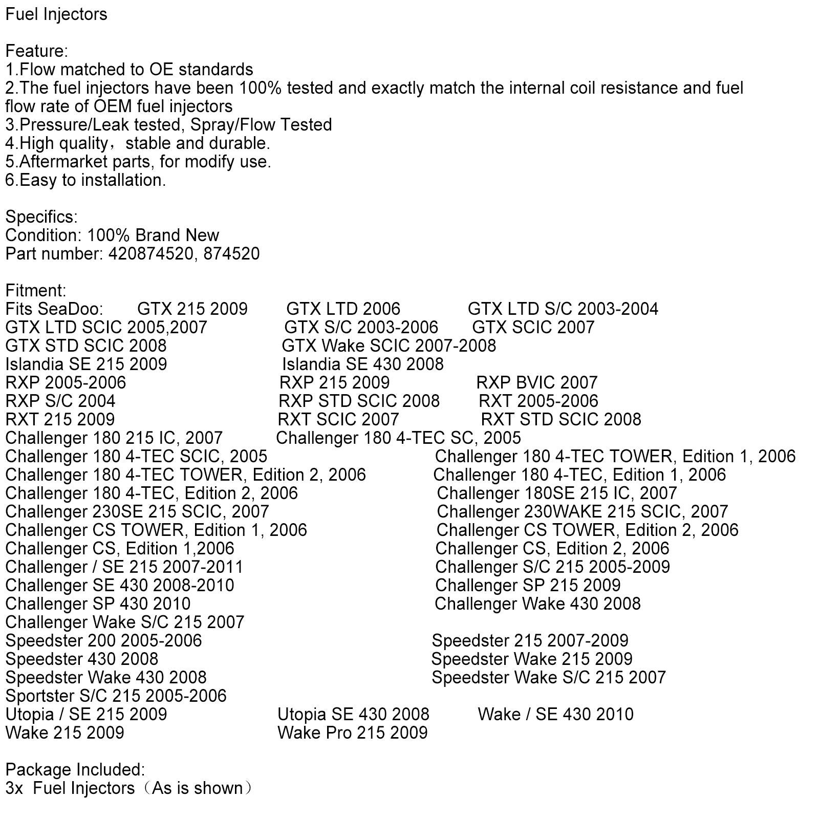 3 pezzi 420874520 iniettori di carburante 874520 per Sea-Doo GTX 4 TEC GTX 215 GTX RXP