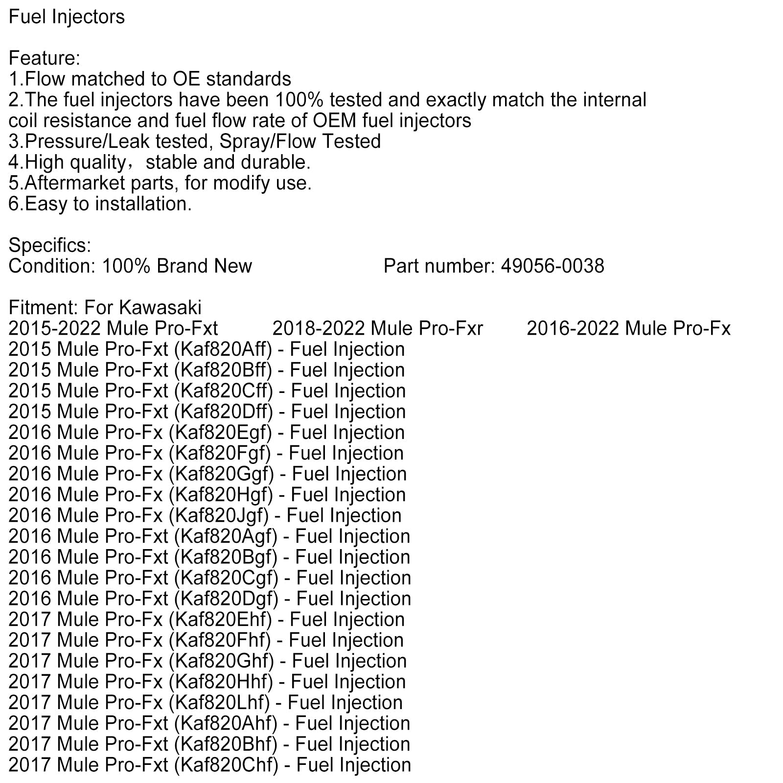 3 pezzi 49056-0038 iniettore di carburante per Kawasaki Mule PRO FX FXR FXT KAF820 KAF820 EPS