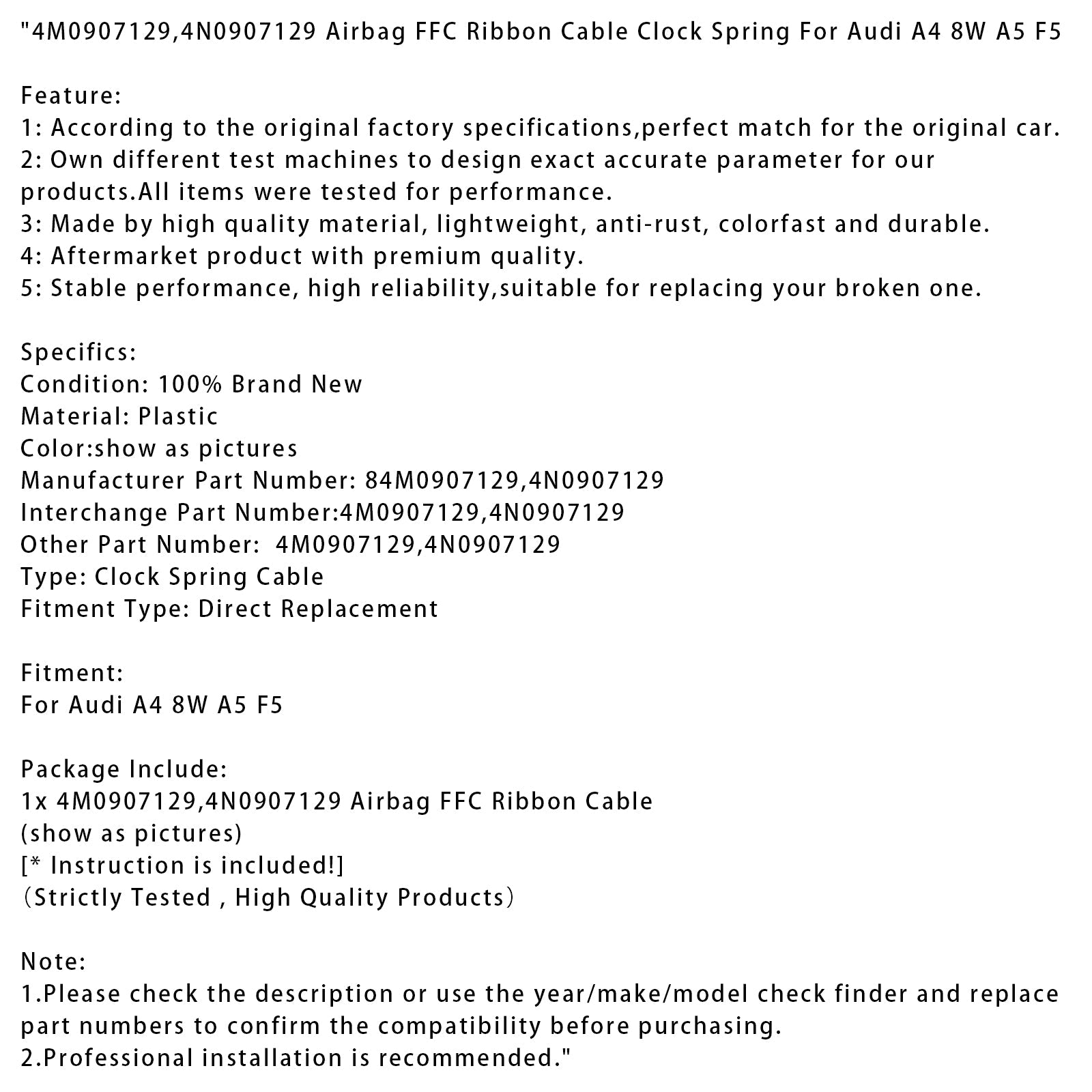 4M0907129,4N0907129 Cavo a nastro FFC per airbag, molla di trasmissione per Audi A4 8W, A5 F5