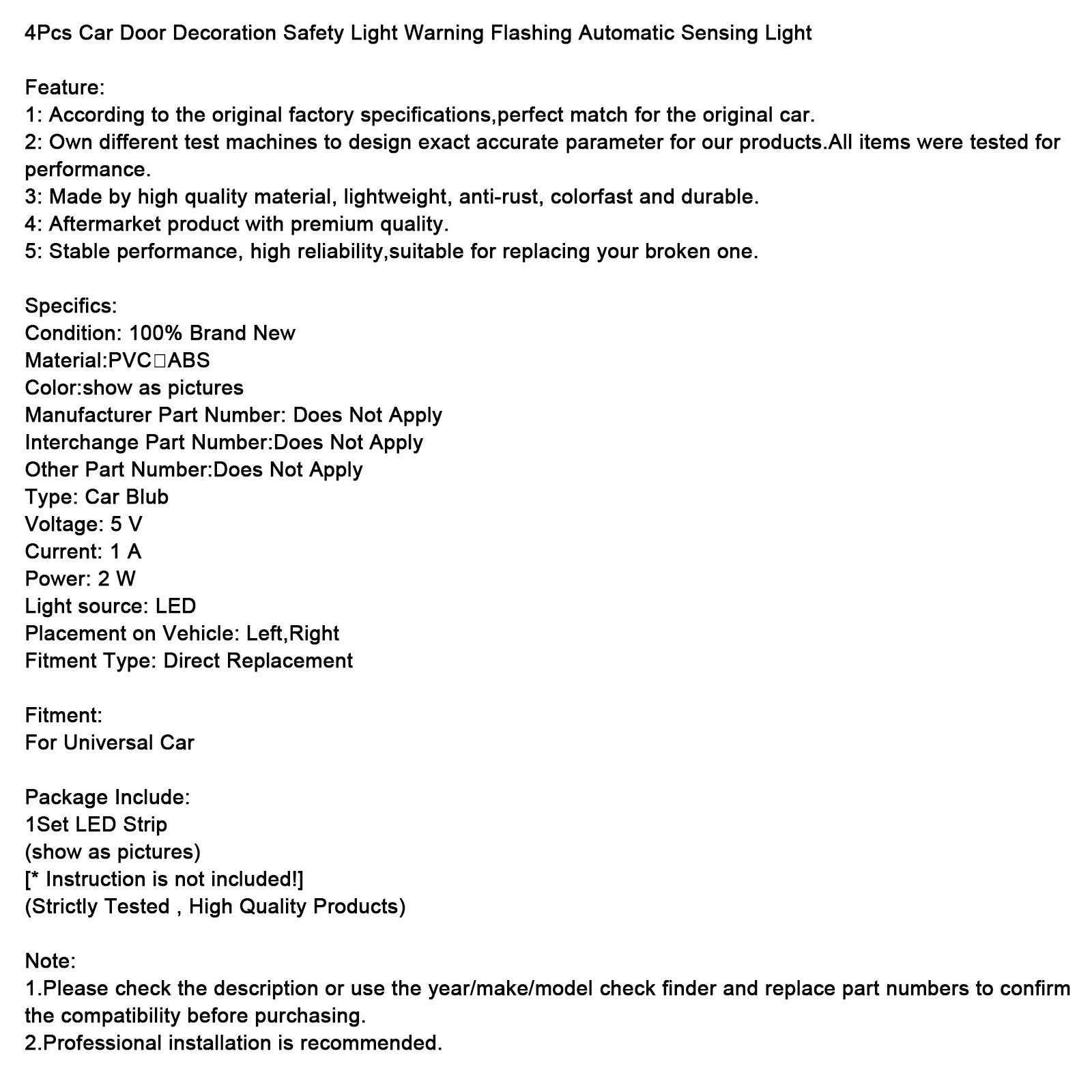 4 pezzi di luce di sicurezza per decorazione portiera auto, luce lampeggiante di avvertimento con rilevamento automatico