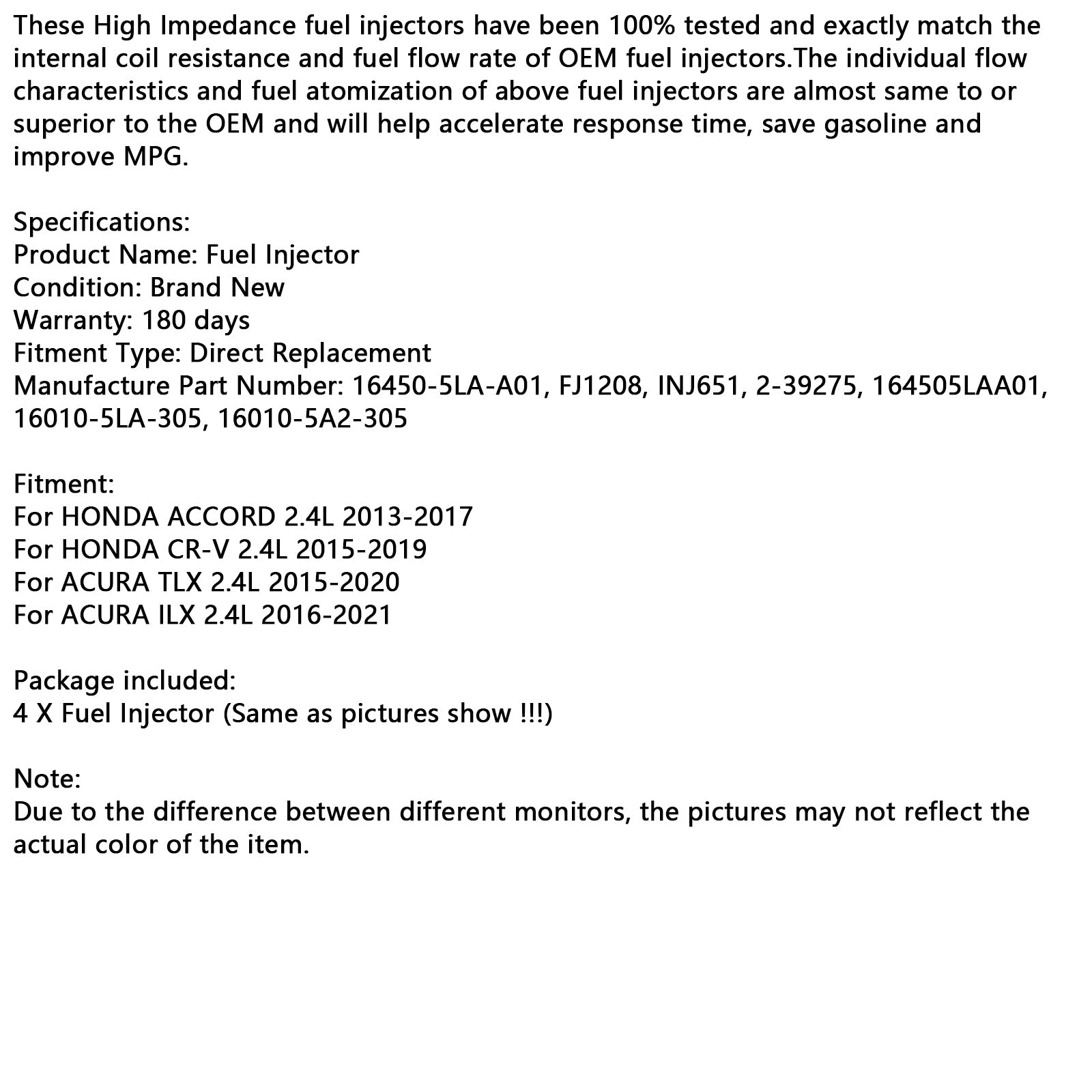 Iniettore di carburante 4 pezzi 16450-5LA-A01 adatto a CR-V TLX 2.4L 2015-2019 adatto ad Acura