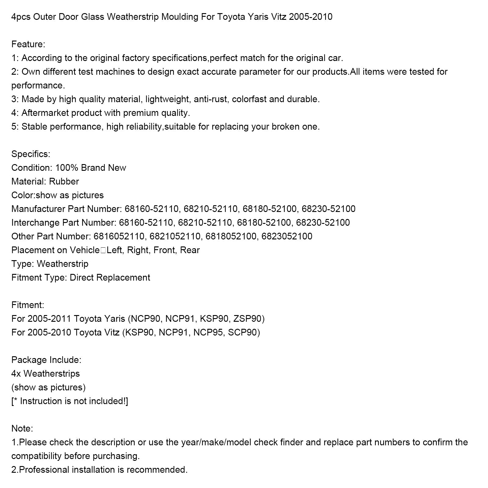 2005-2011 Toyota Yaris 4 pezzi modanatura guarnizione in vetro per porta esterna 68160-52110