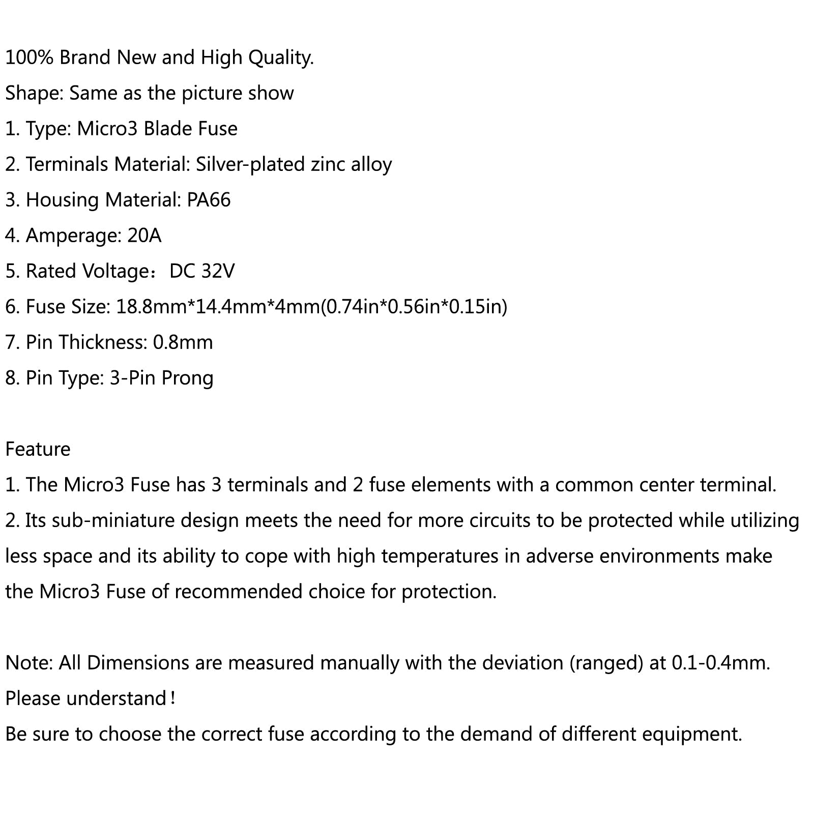 5Pcs Micro3 Fuse Automotive ATL 20A 3 Prong Micro Fusibile a lama per Ford Focus