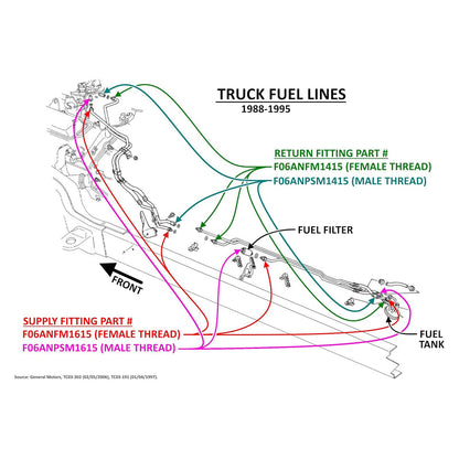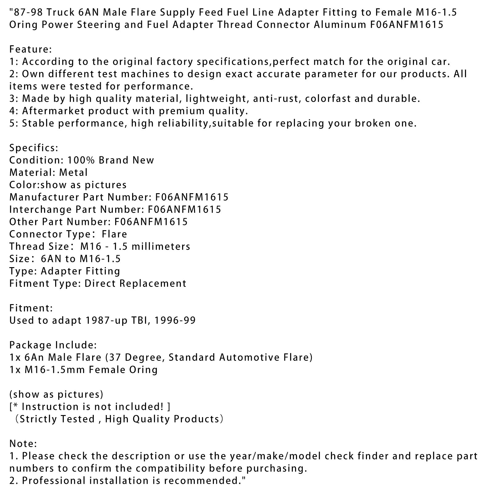 87-98 Truck 6AN Adattatore per tubo di alimentazione del carburante con attacco a svasatura maschio M16-1.5 per connettore filettato per adattatore per servosterzo e carburante in alluminio F06ANFM1615