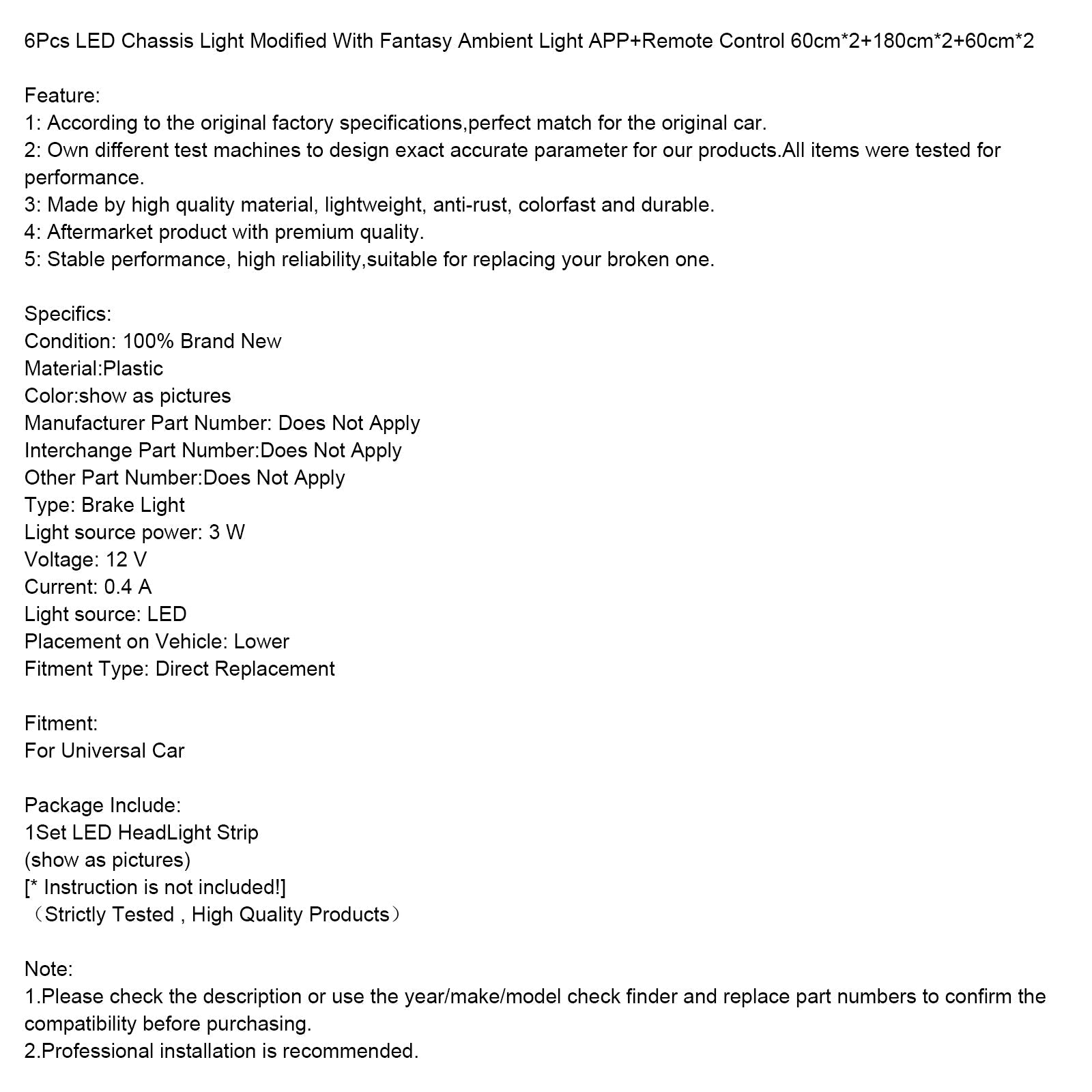 1. Prima dell'acquisto, controllare la descrizione o utilizzare lo strumento di ricerca per anno/marca/modello e sostituire i numeri dei pezzi per confermare la compatibilità.