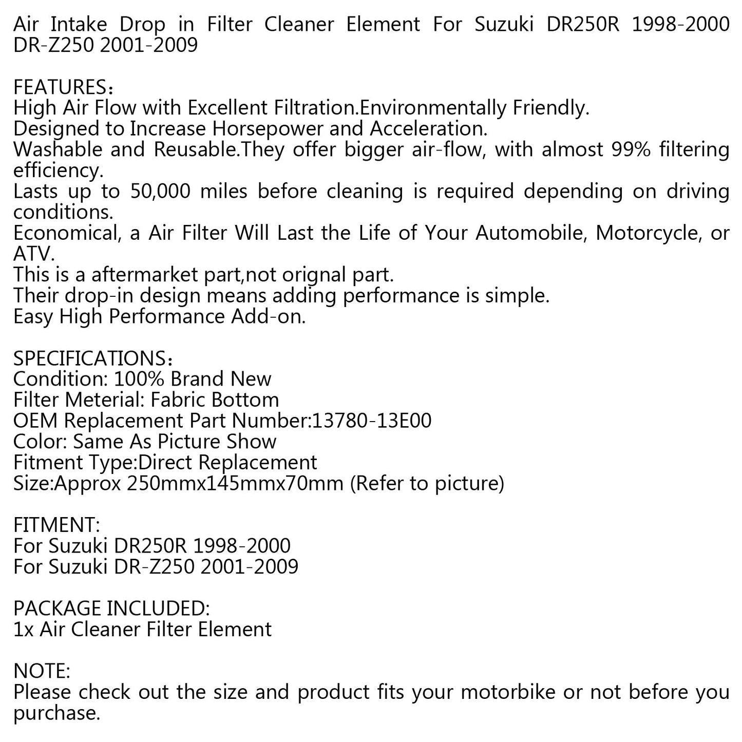 Goccia di aspirazione dell'aria nell'elemento di pulizia del filtro per Suzuki DR250R 1998-2000 DR-Z250 2001-2009
