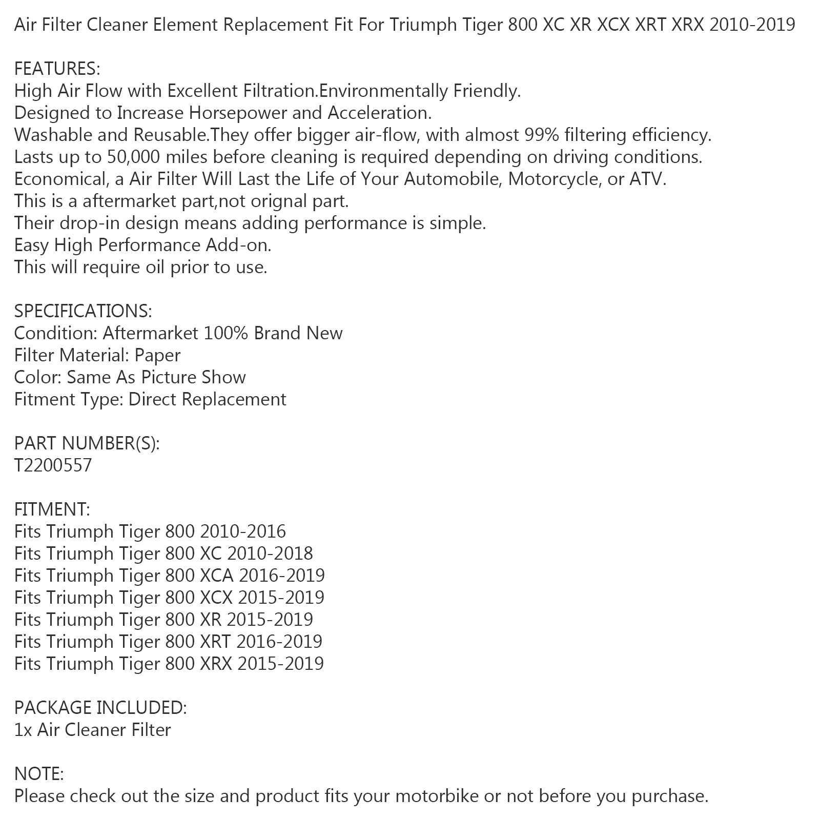Sostituzione dell'elemento del filtro dell'aria adatto per Triumph Tiger 800 XC XR XCX XRT XRX 2010-2019