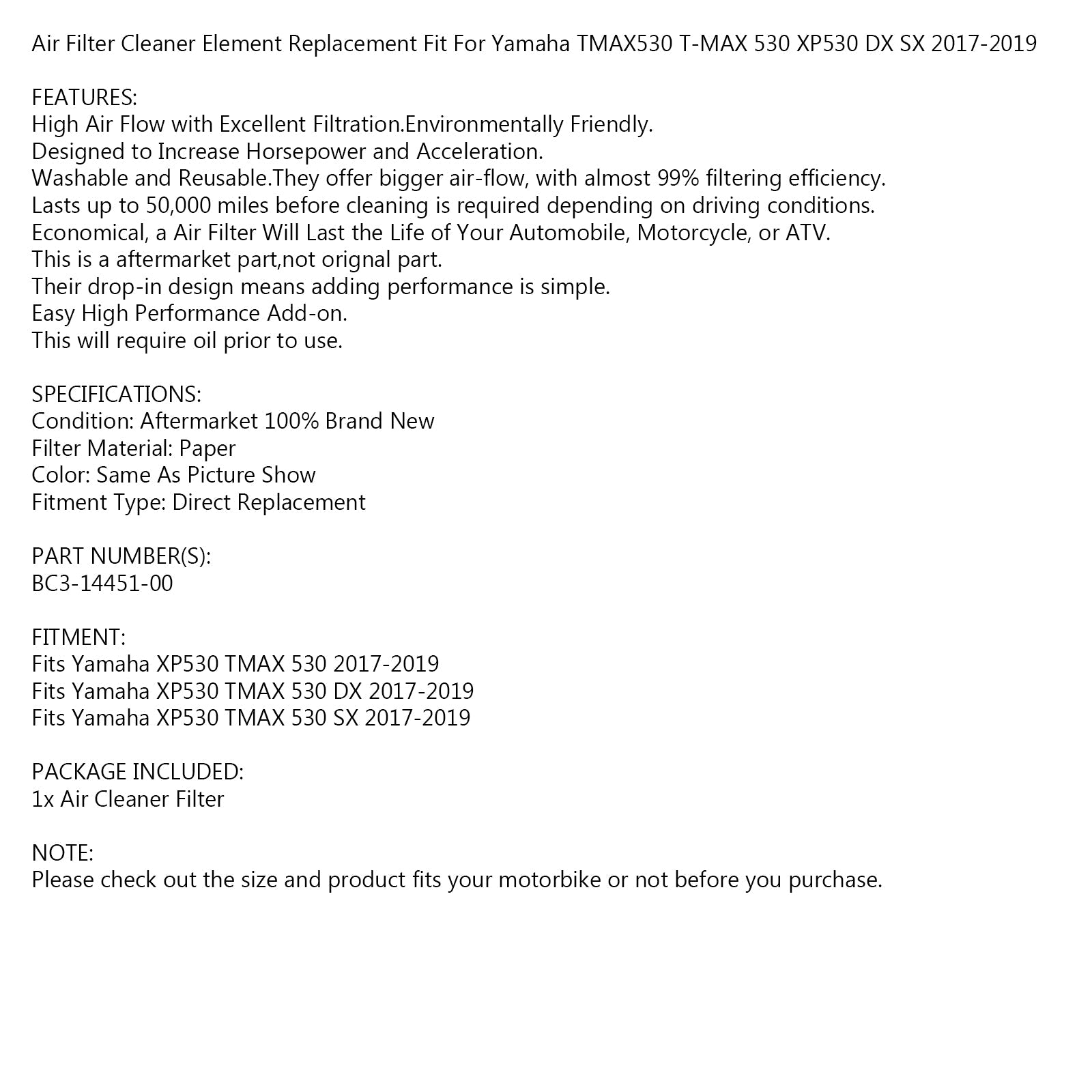 Filtro aria adatto per Yamaha T-MAX TMAX 530 2017 2018 2019 Repl. # BC3-14451-00-00 Generico