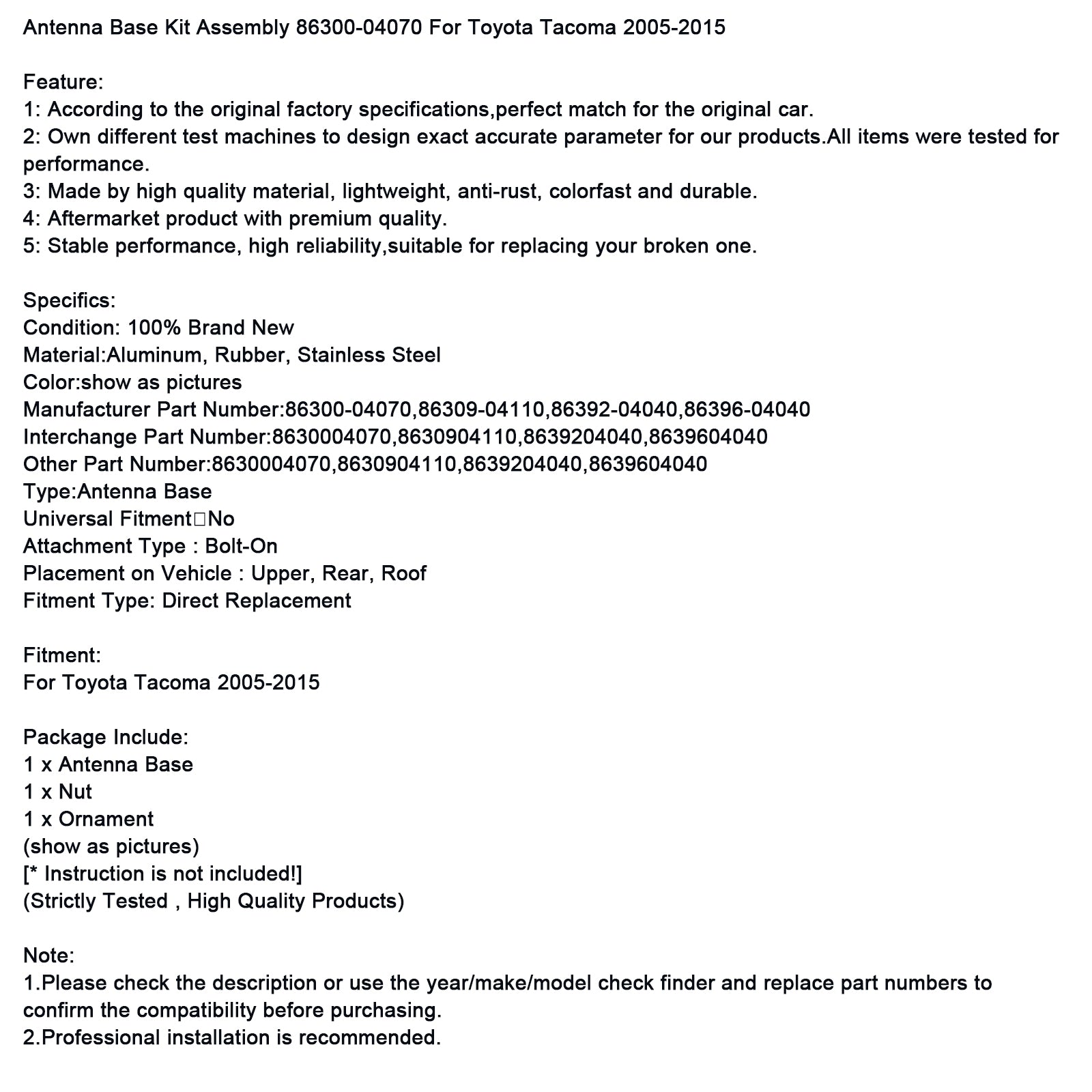 Kit base antenna 86300-04070 adatto per Toyota Tacoma 2005-2015