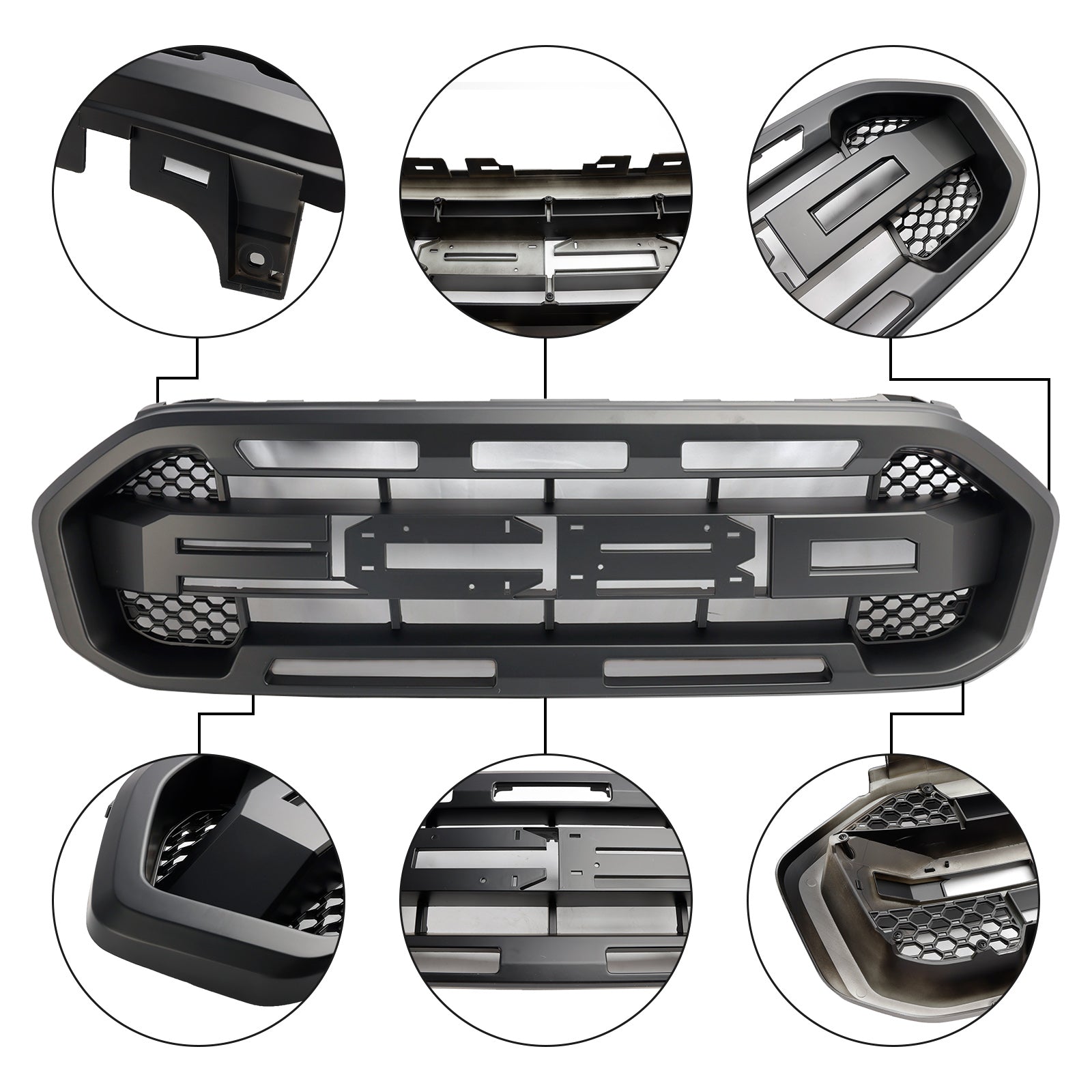 Per Ford Ranger 2019-2023 Griglia per paraurti anteriore in stile rapace nero