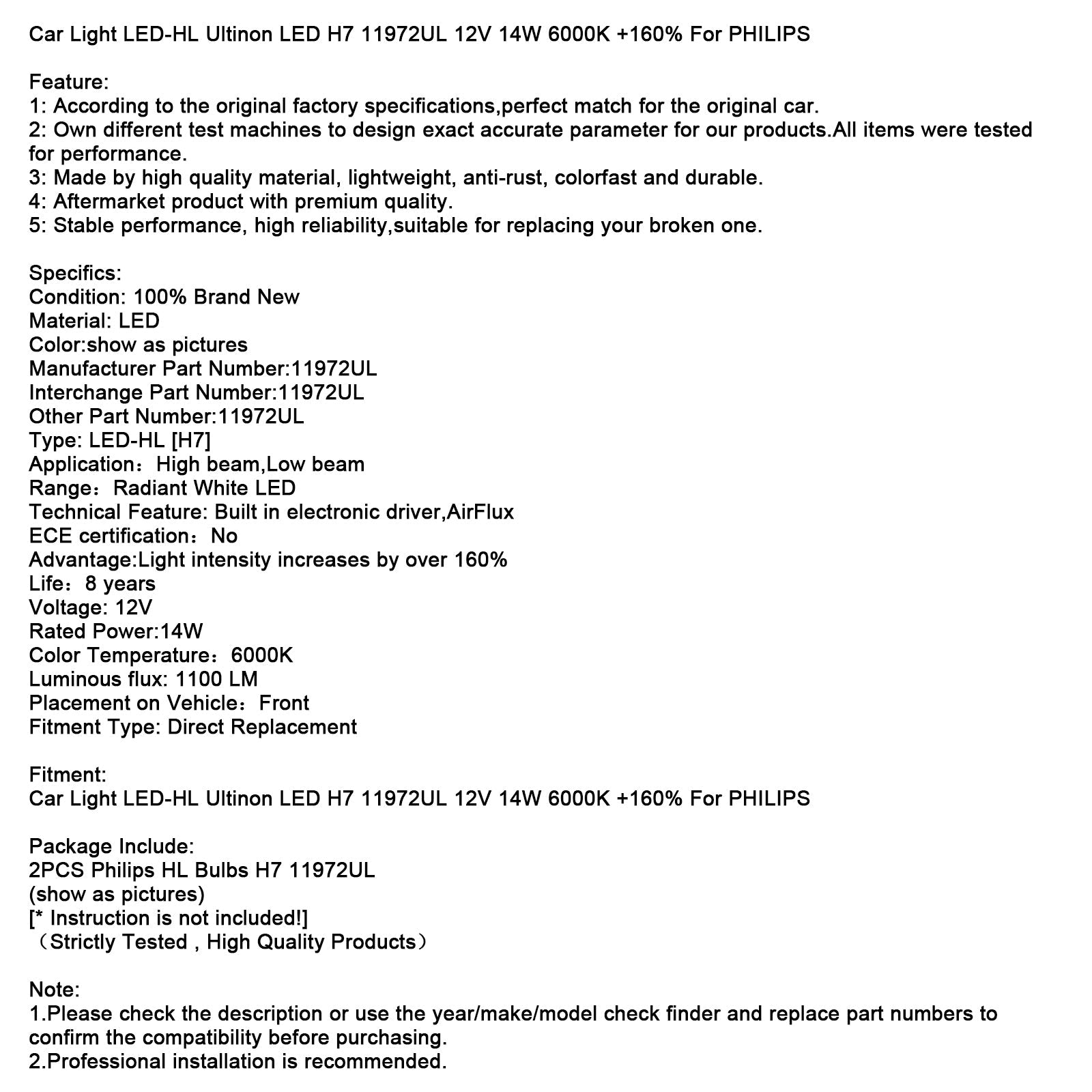 Luce auto LED-HL Ultinon LED H7 11972UL 12V 14W 6000K +160% per PHILIPS