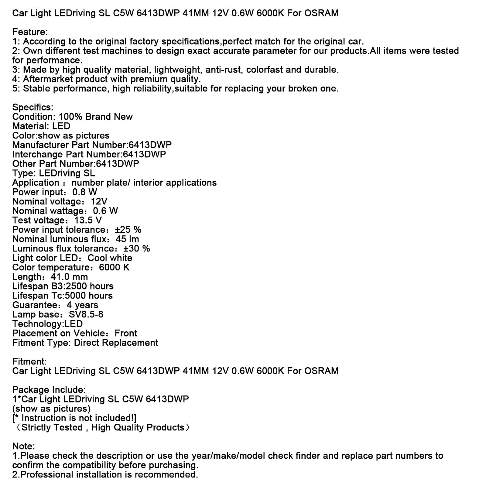 1*Luce per auto LEDriving SL C5W 6413DWP