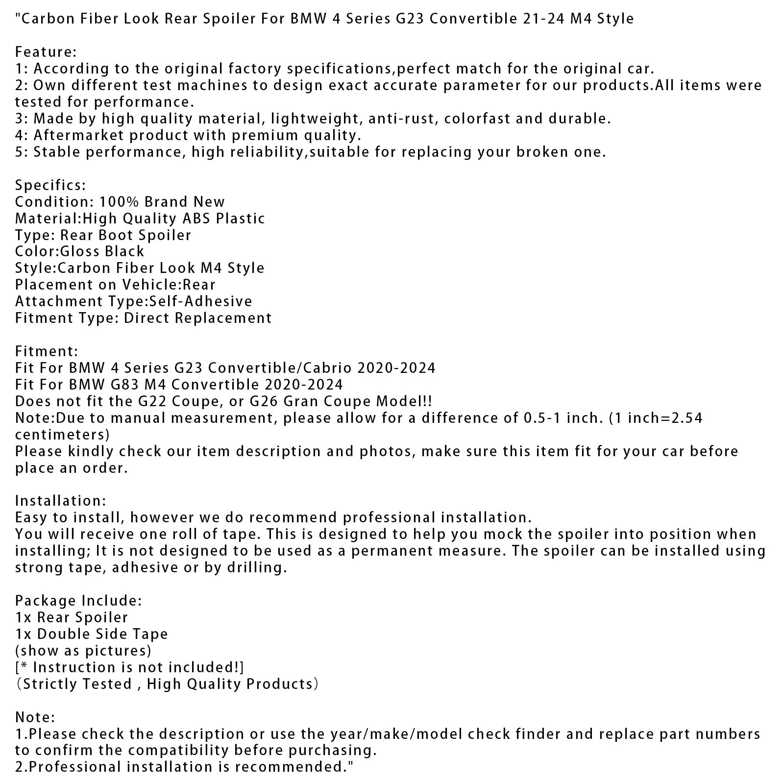 Spoiler posteriore in fibra di carbonio adatto per BMW Serie 4 G23 Cabrio 21-24 stile M4