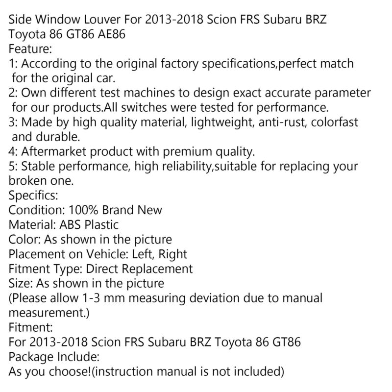 Feritoia per finestra laterale in carbonio per 2013-2018 Scion FRS Subaru BRZ Toyota 86 GT86 Generico