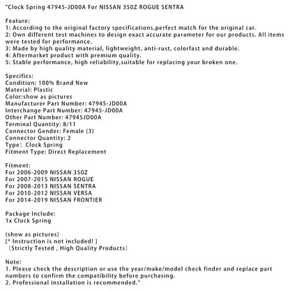 Molla dell'orologio 47945-JD00A per NISSAN 350Z ROGUE SENTRA