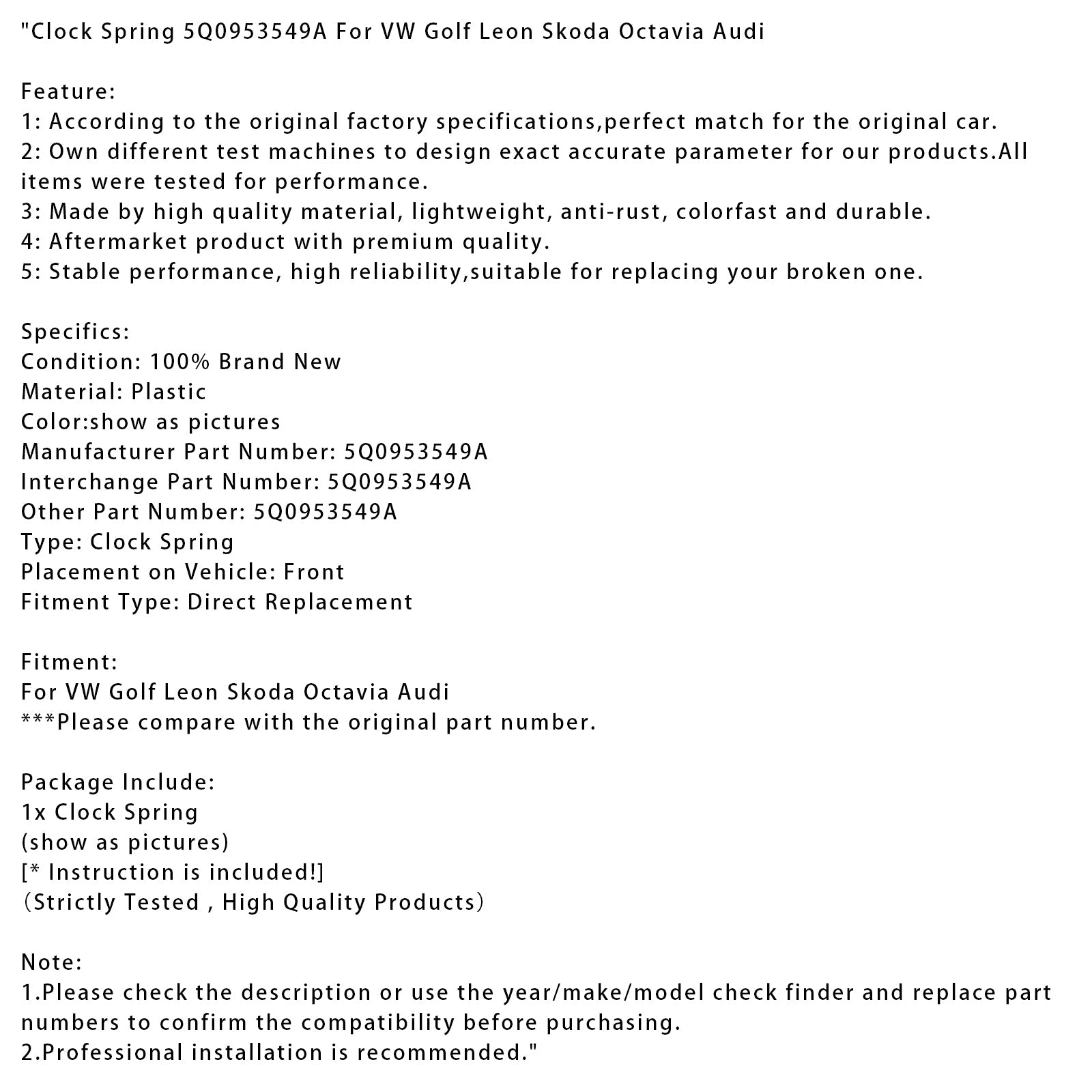 Molla dell'orologio VW Golf Leon Skoda Octavia Audi 5Q0953549A