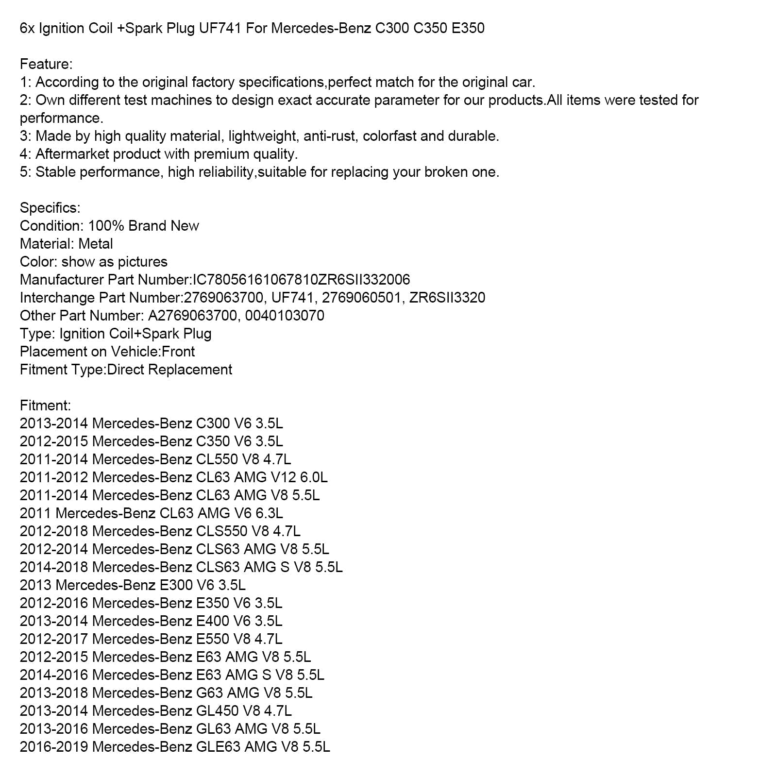 6x Bobina di accensione + Candela UF741 Per Mercedes-Benz C300 C350 E350