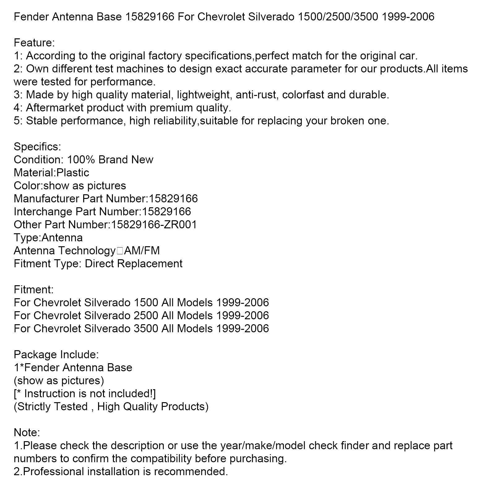 Base antenna parafango 15829166 per Chevrolet Silverado 1500/2500/3500 1999-2006