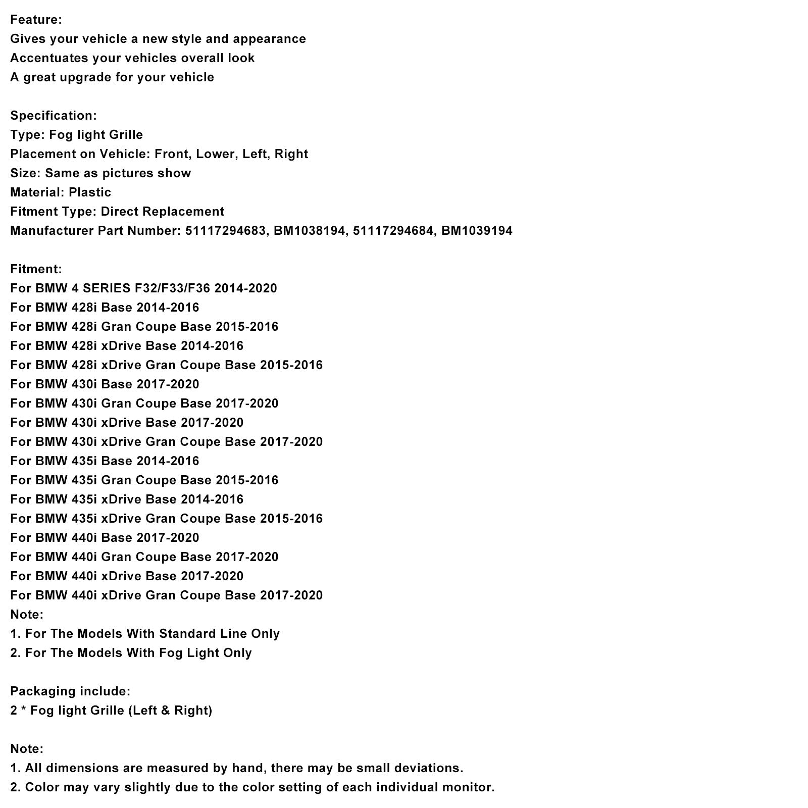 Griglia di copertura per fendinebbia, adatta per BMW SERIE 4 F32 428i 2014-2020