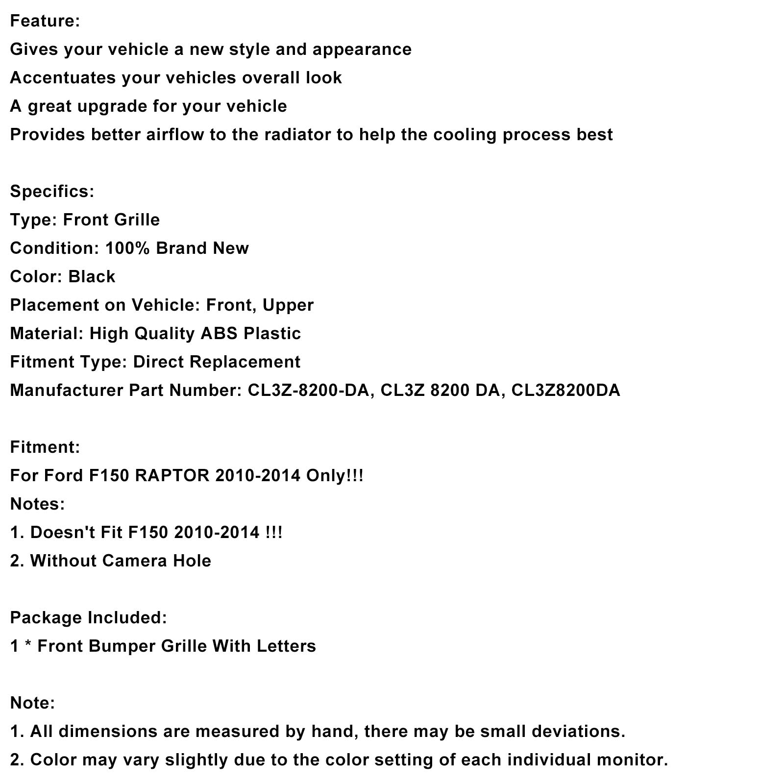 Griglia paraurti anteriore CL3Z8200DA adatta per Ford F150 2010-2014 Raptor senza foro per telecamera