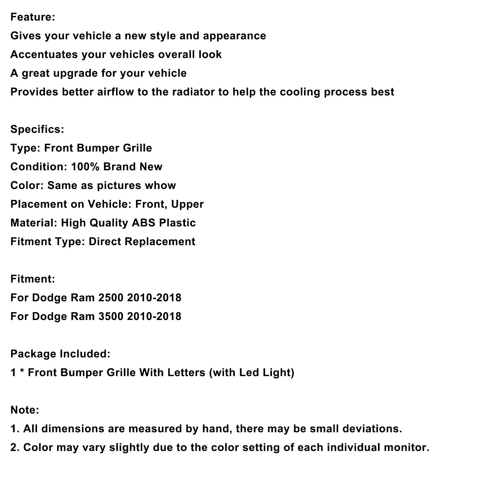 Griglia paraurti anteriore adatta per Ram 2500/3500 Laramie Limited 2010-2018 con luce a LED