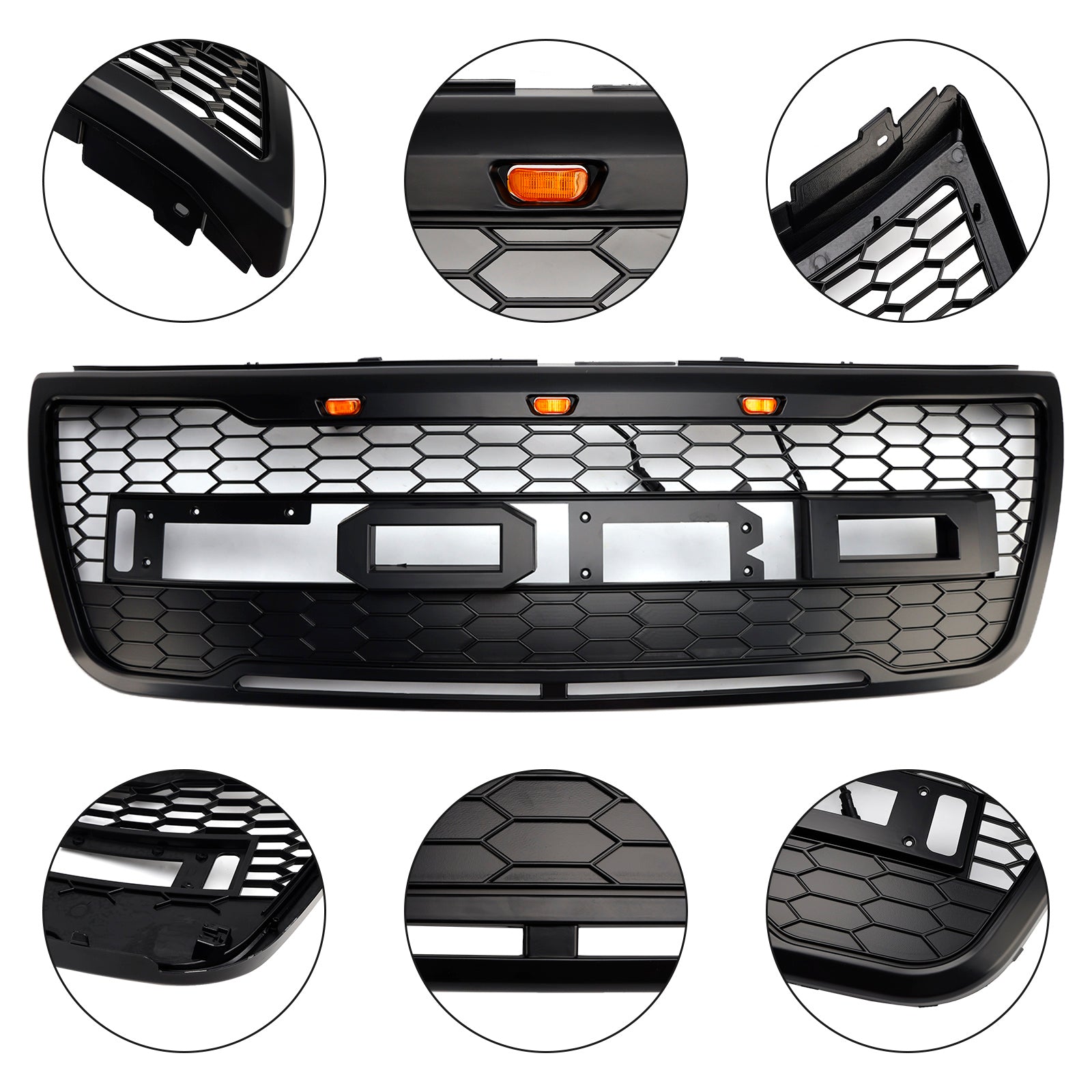Griglia paraurti anteriore superiore adatta per Ford Explorer 2012-2015 con luci grigie