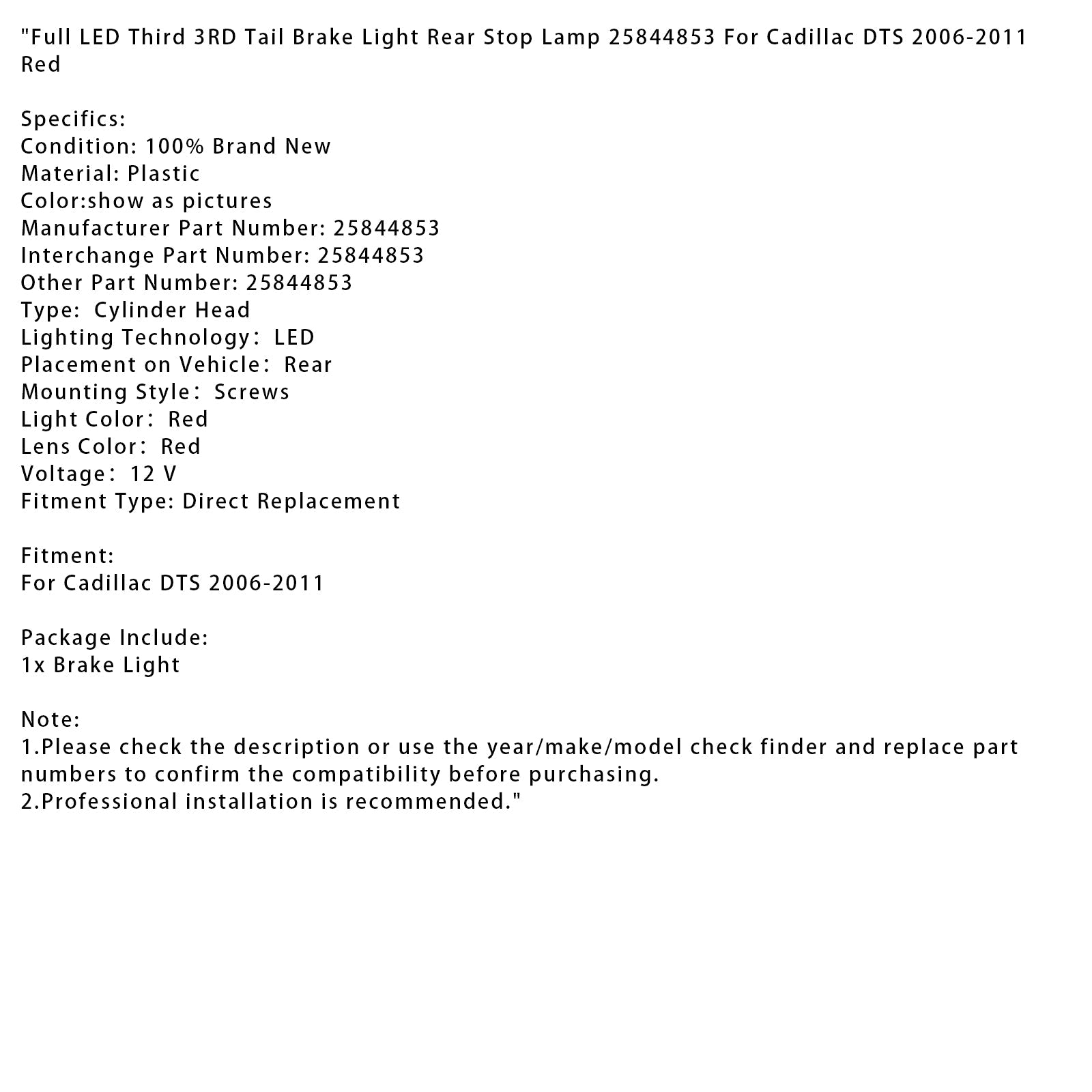 Luce di stop posteriore a LED completa Cadillac DTS 2006-2011, terza luce di stop posteriore, rossa 25844853