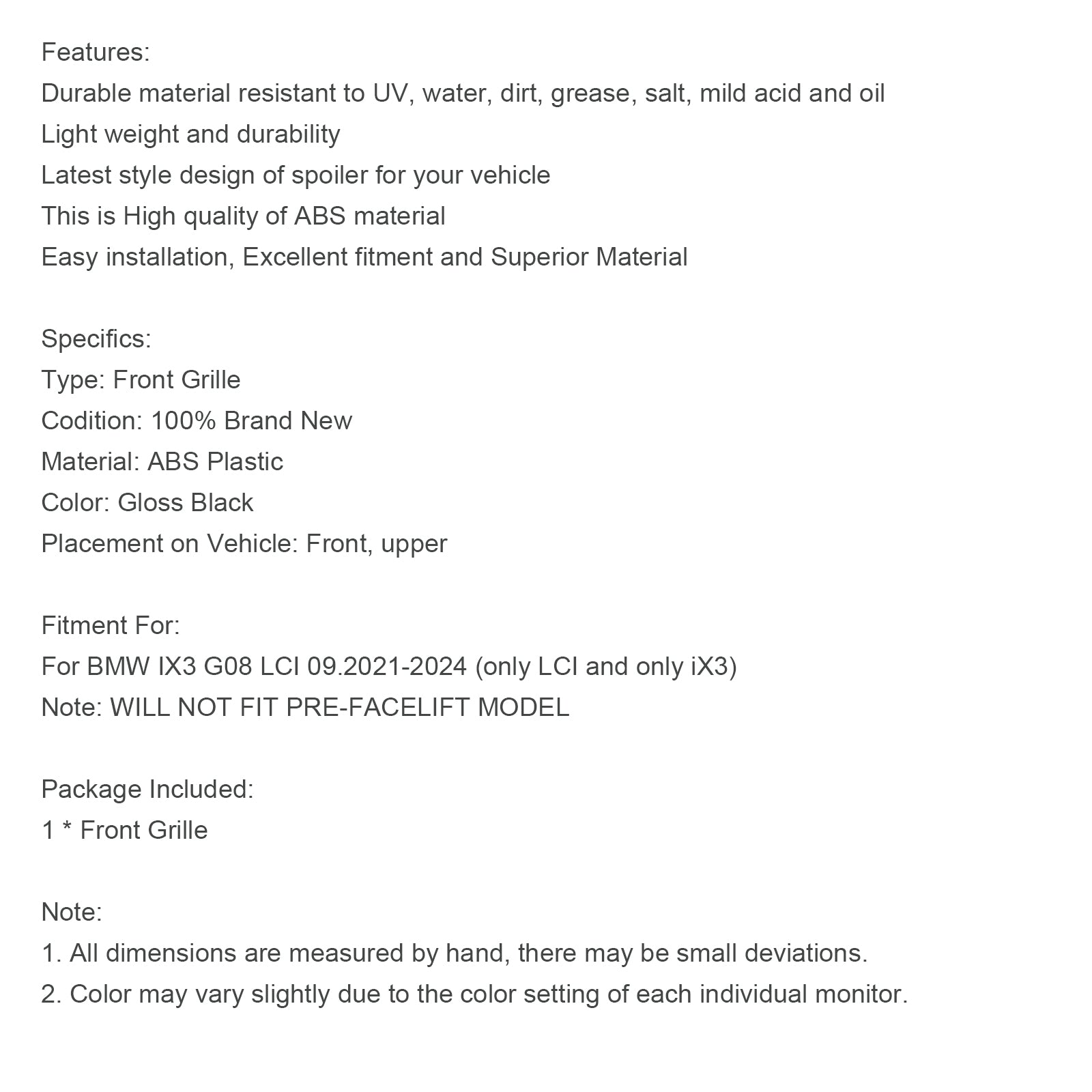 Per BMW IX3 G08 LCI 09.2021-2024 (solo LCI e solo iX3)