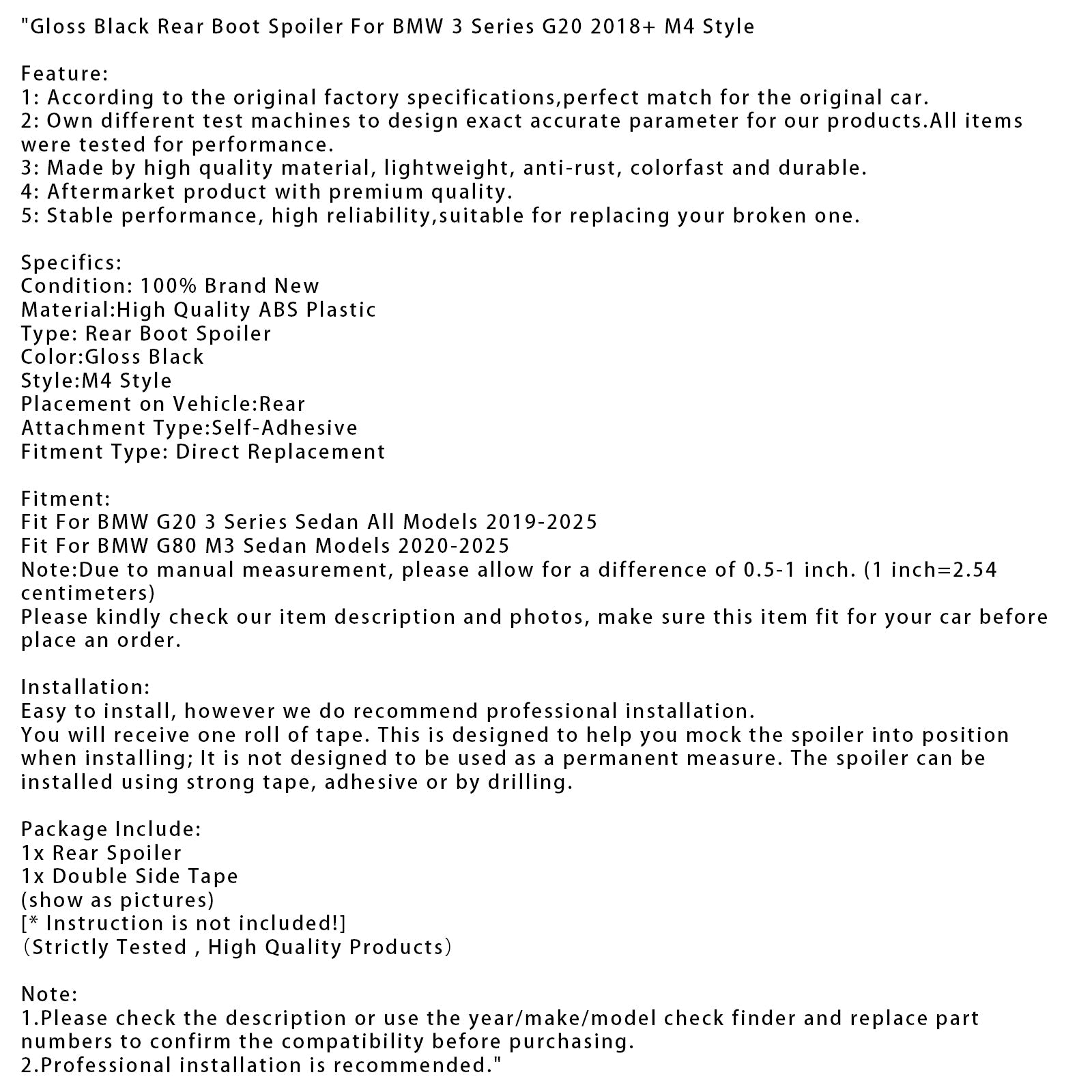 Spoiler posteriore nero lucido per BMW Serie 3 G20 G80 2018+ stile M4