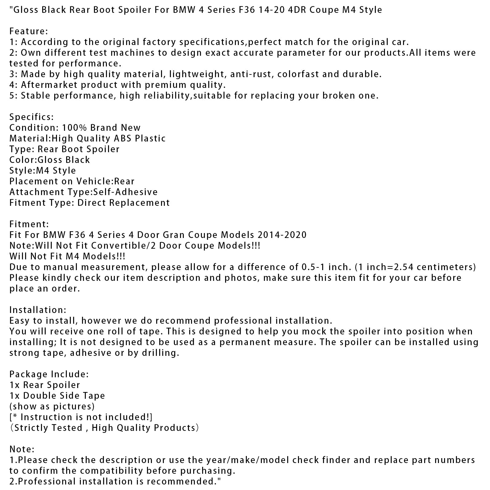 Adatto per BMW F36 Serie 4 4 porte Gran Coupé modelli 2014-2020