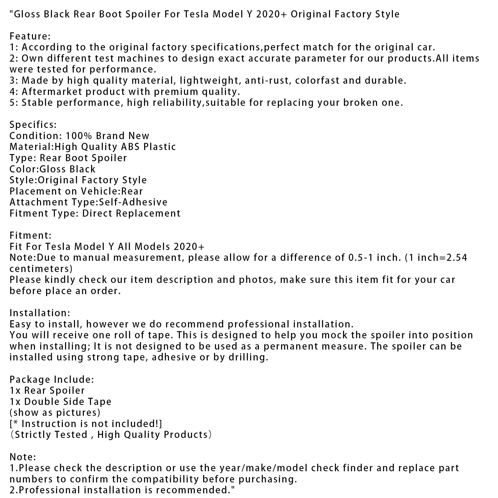 Spoiler posteriore nero lucido per Tesla Model Y 2020+, stile originale di fabbrica
