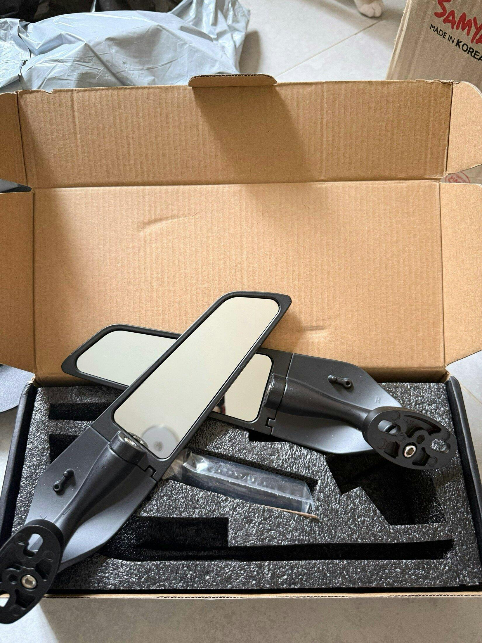 Gli specchietti sono trasparenti e il design si adatta perfettamente alla dinamica della moto. Molto soddisfatto! !