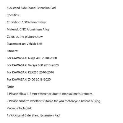 Cavalletto Laterale Allarga Pad Piastra per KAWASAKI Ninja 400 Versys 650 KLX250 Generico