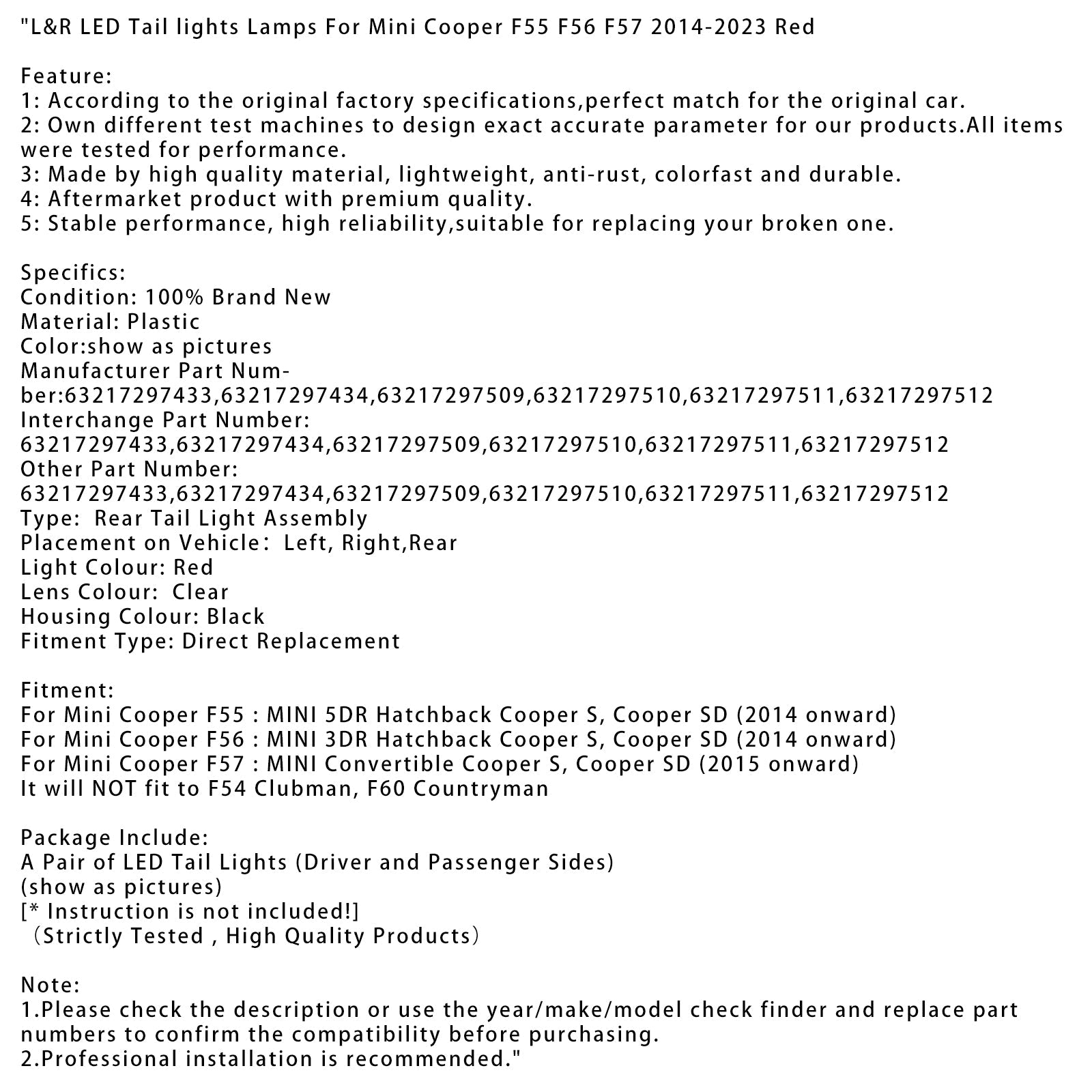 Fanali posteriori a LED L&R per Mini Cooper F55 F56 F57 2014-2023 rossi