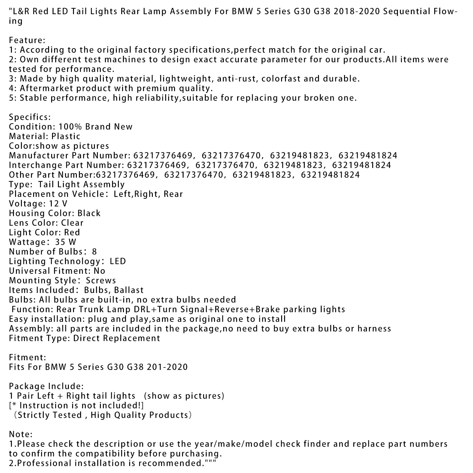 Gruppo ottico posteriore a LED rossi L&R per BMW Serie 5 G30 G38 2018-2020, flusso sequenziale
