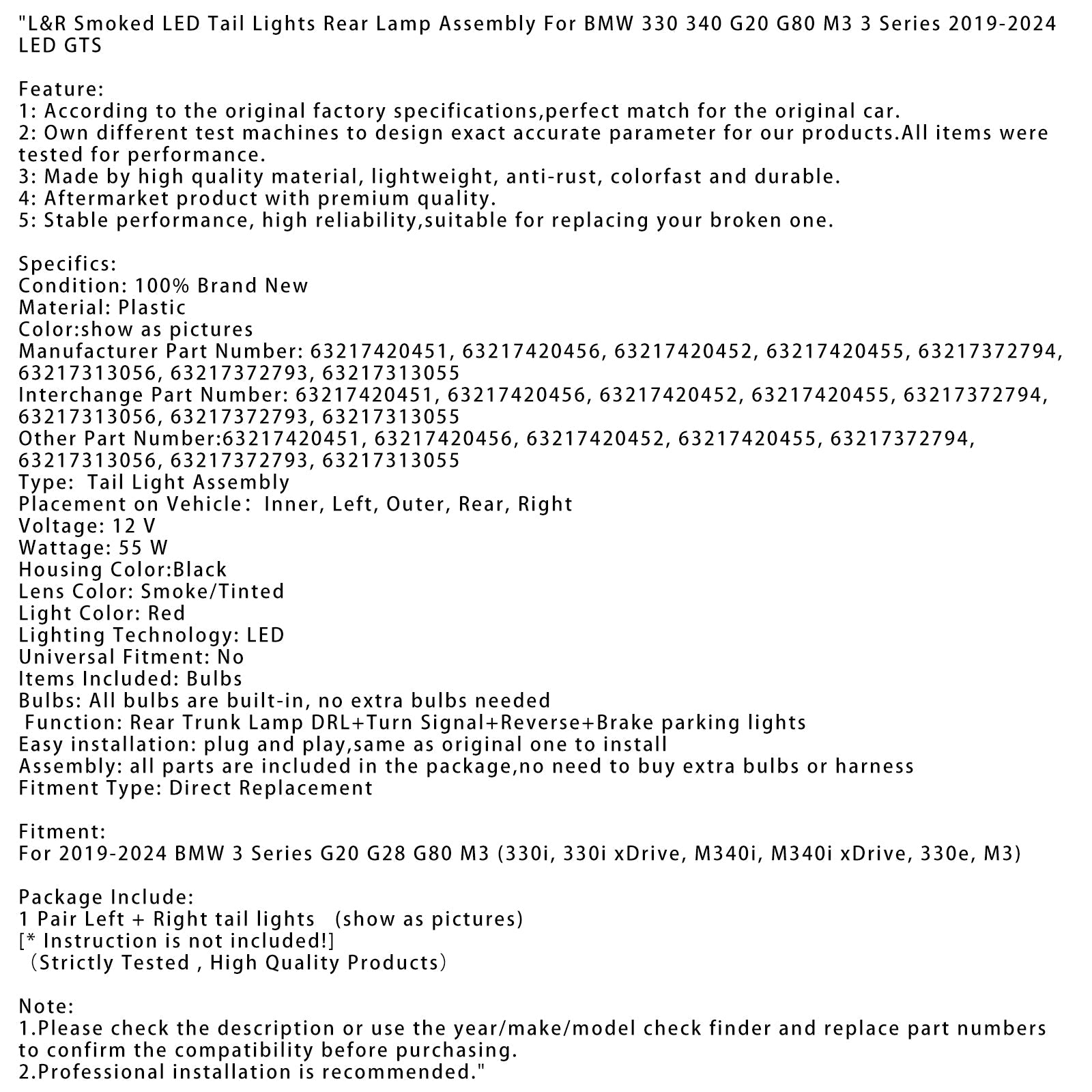 Gruppo ottico posteriore a LED fumé L&R per BMW 330 340 G20 G80 M3 Serie 3 2019-2024 LED GTS